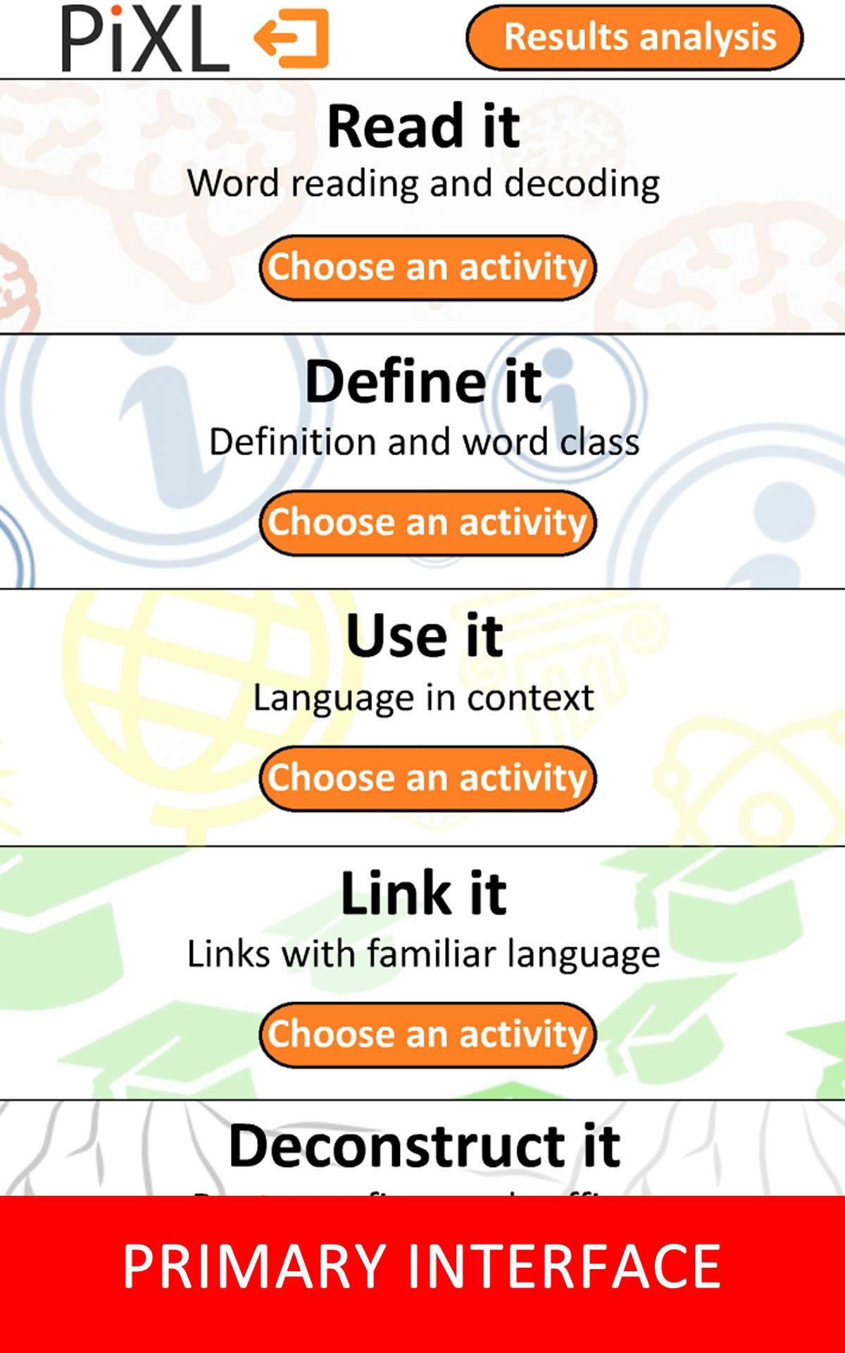 Both versions of the app build a better understanding of key vocabulary through games developed around the following five areas: