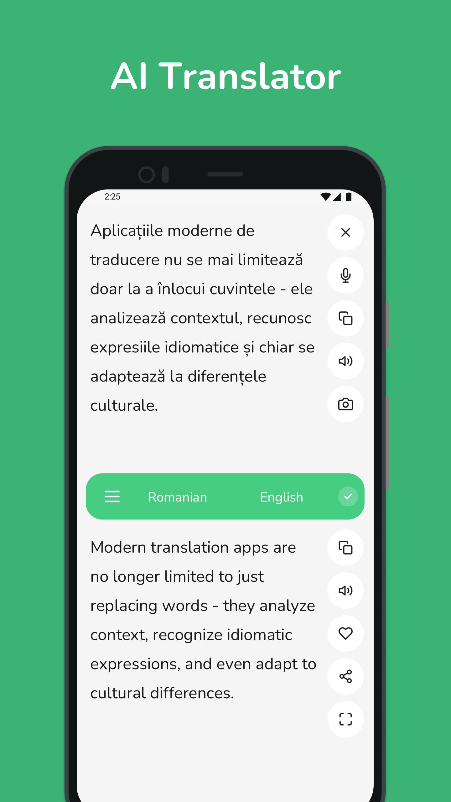 Whether you're looking to improve your language skills, communicate with friends, or explore new destinations, our Romanian-English and English-Romanian translator is your ultimate language companion. Experience the future of translation with cutting-edge features like text recognition from photos and real-time AI learning.