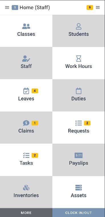 Schools can use this mobile app for internal processes such as staff clock in/out, leave application, payslip distribution, request processing, etc.