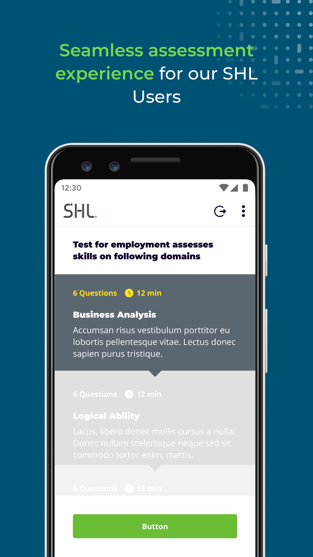 SHL supports businesses around the world with an advanced assessment experience that helps candidates like you demonstrate your skills, potential and fit. With help of our app, you can quickly complete assessments using your mobile device anytime, anywhere you want.