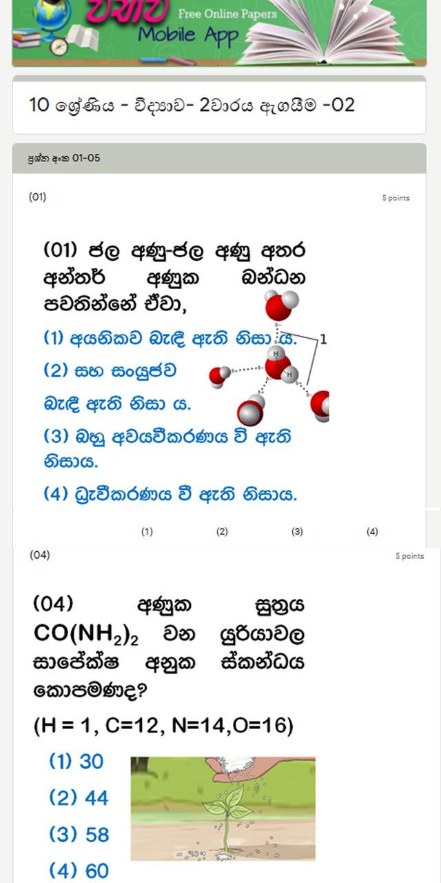 Online Papers in both Sinhala and English Medium.