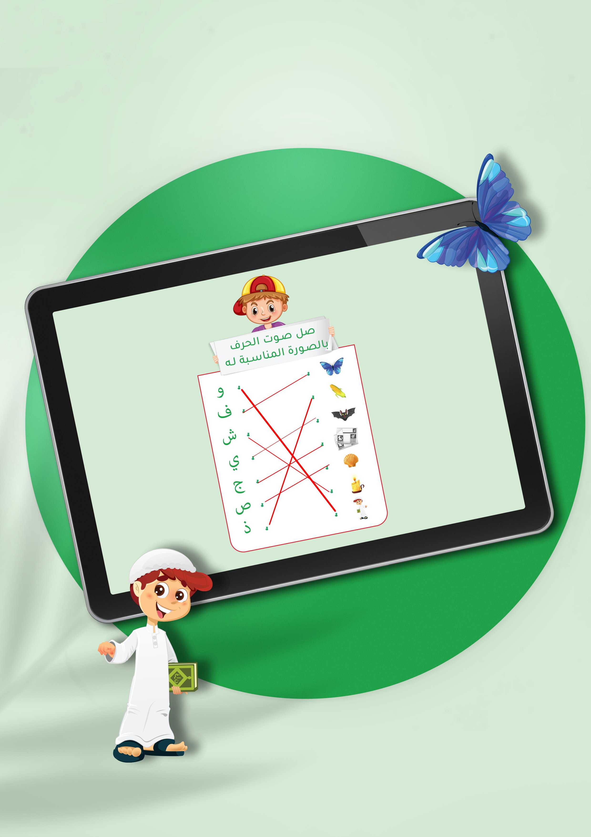 The application of the correct or sound of the letter The idea of the application depends on the child's learning of the sounds of the Arabic letters and their pronunciation instead of learning the names of the letters so that the child can pronounce the words easily.