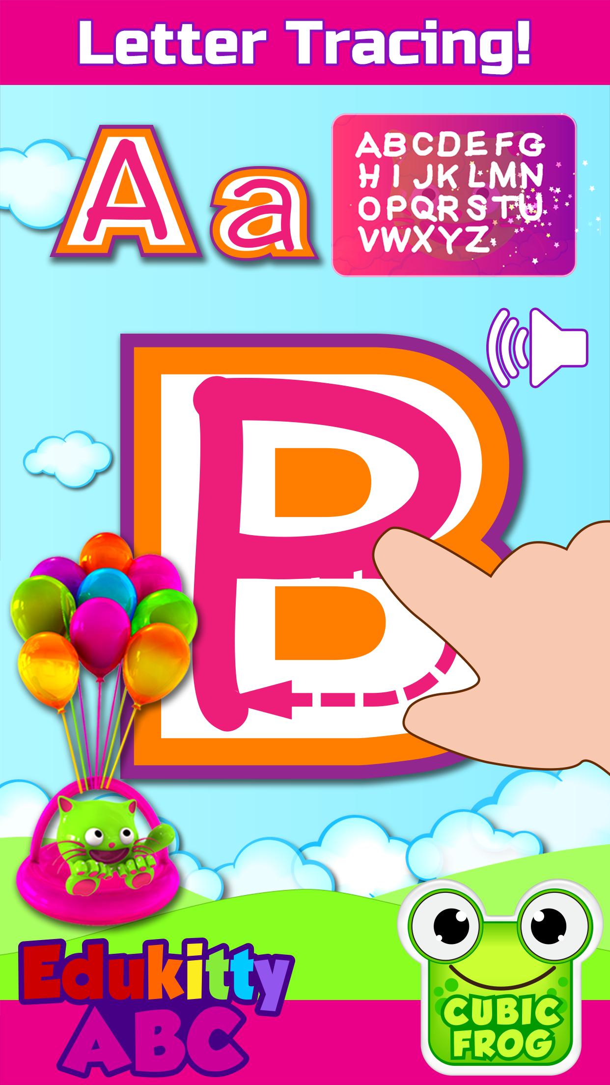 EduKitty ABC alphabet learning toddler app for preschool kids teaches young children English alphabet letters, phonic sounds for kids, lowercase and uppercase abc letters and much more. It features a series of free alphabet learning games for toddlers that parents & teachers can use to help kids master their English words, recognize letters, and practice their handwriting.