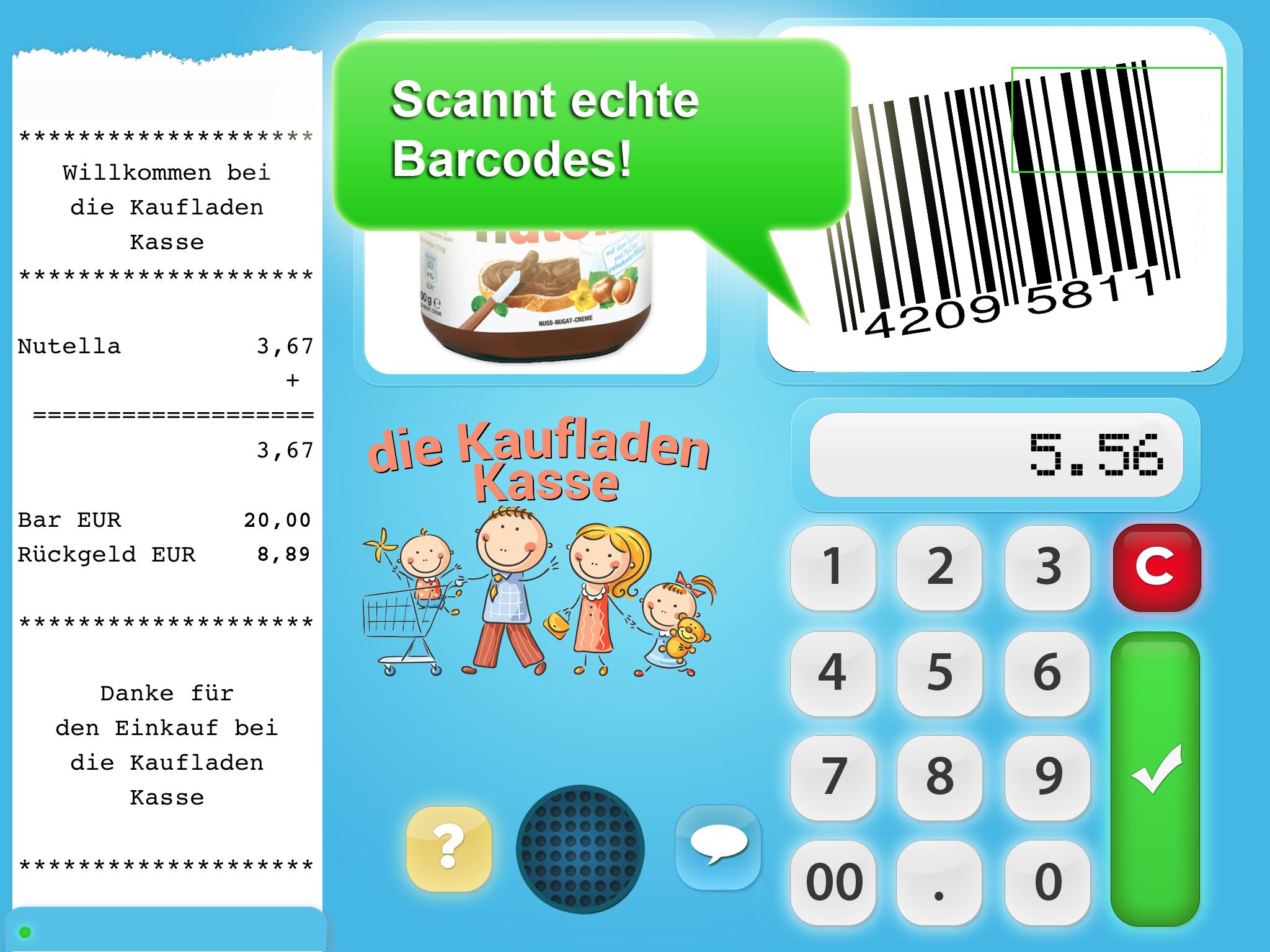 Die Kaufladen Kasse verwandelt Ihr Tablet in eine echte Kasse für Kinder. Mit Die Kaufladen Kasse kann Ihr Kind Produkte und Waren einscannen und im Rahmen des praktischen Spielens gemeinsam mit ihren oder seinen Freunden spielen.