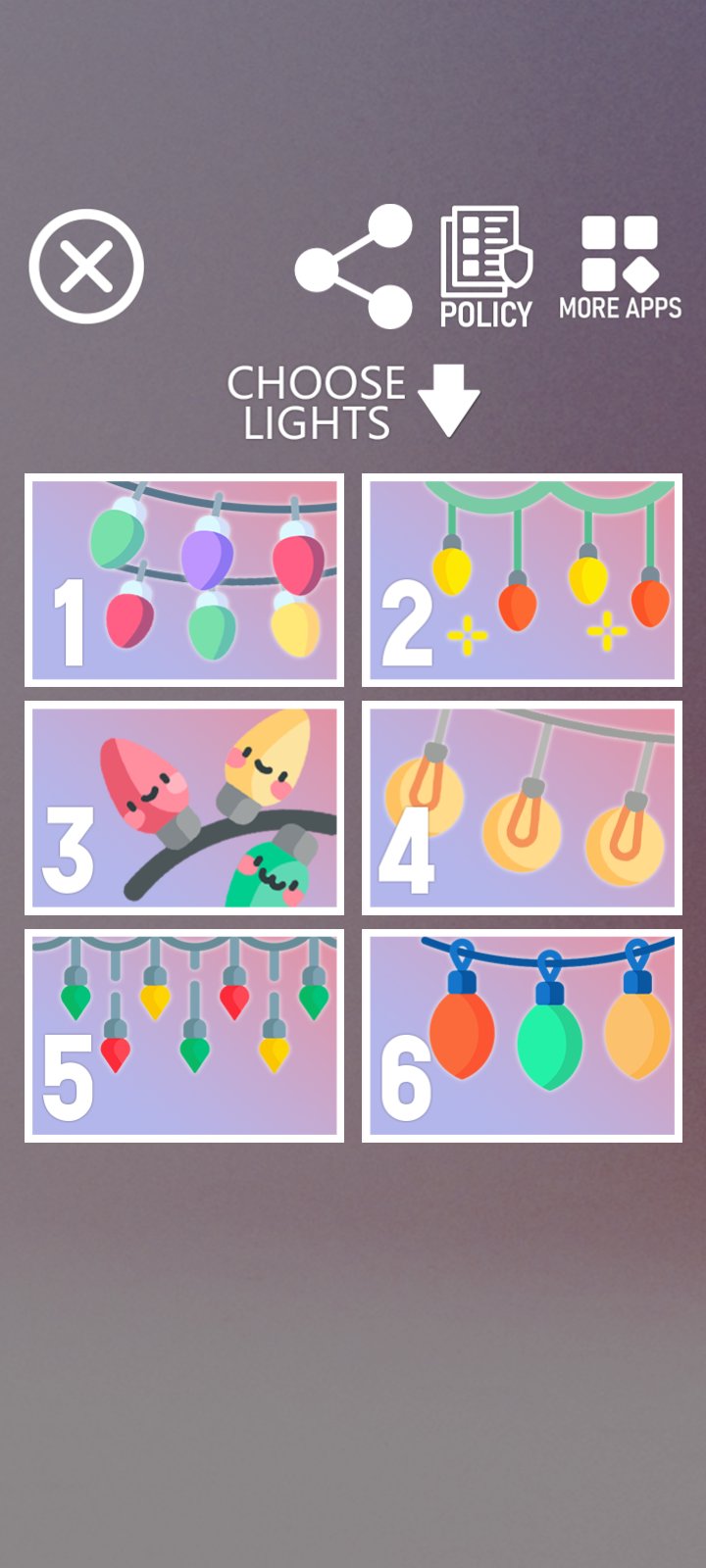 - Choose one of the 6 christmas lights in the main menu