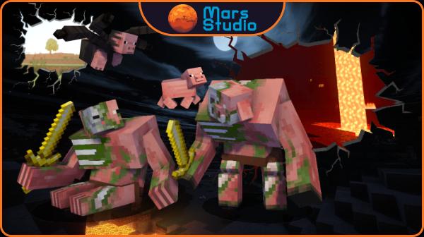 Zombie Pig and Zombie Mutant Piglin: These mobs have 150 health and are player neutral. They only attack if someone attacks them. They are able to walk on lava and summon much stronger minions that last around 20 seconds.