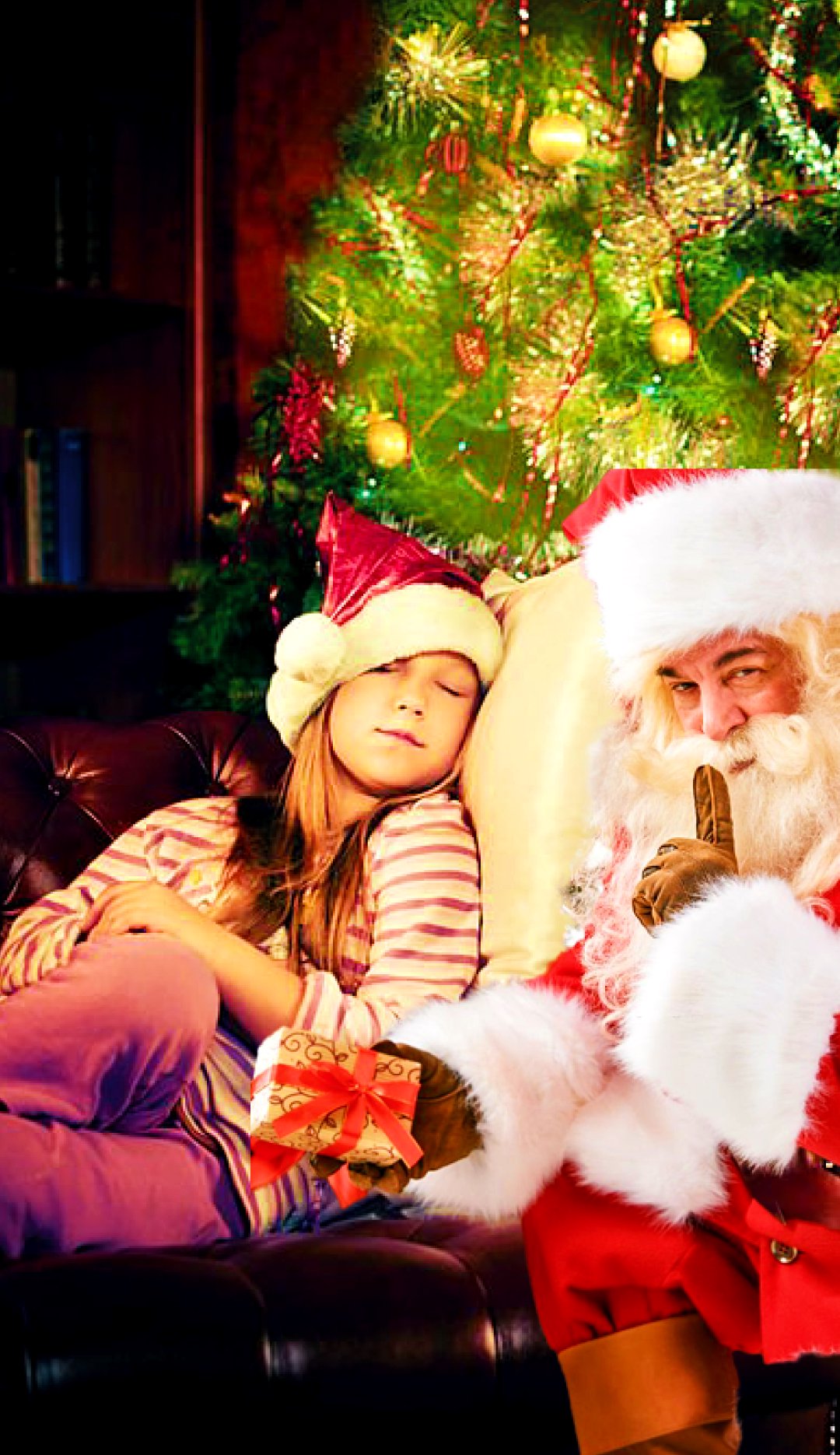 Take a photo of your home, Christmas tree, living room and add Santa Claus to take a photo of Santa Claus.
