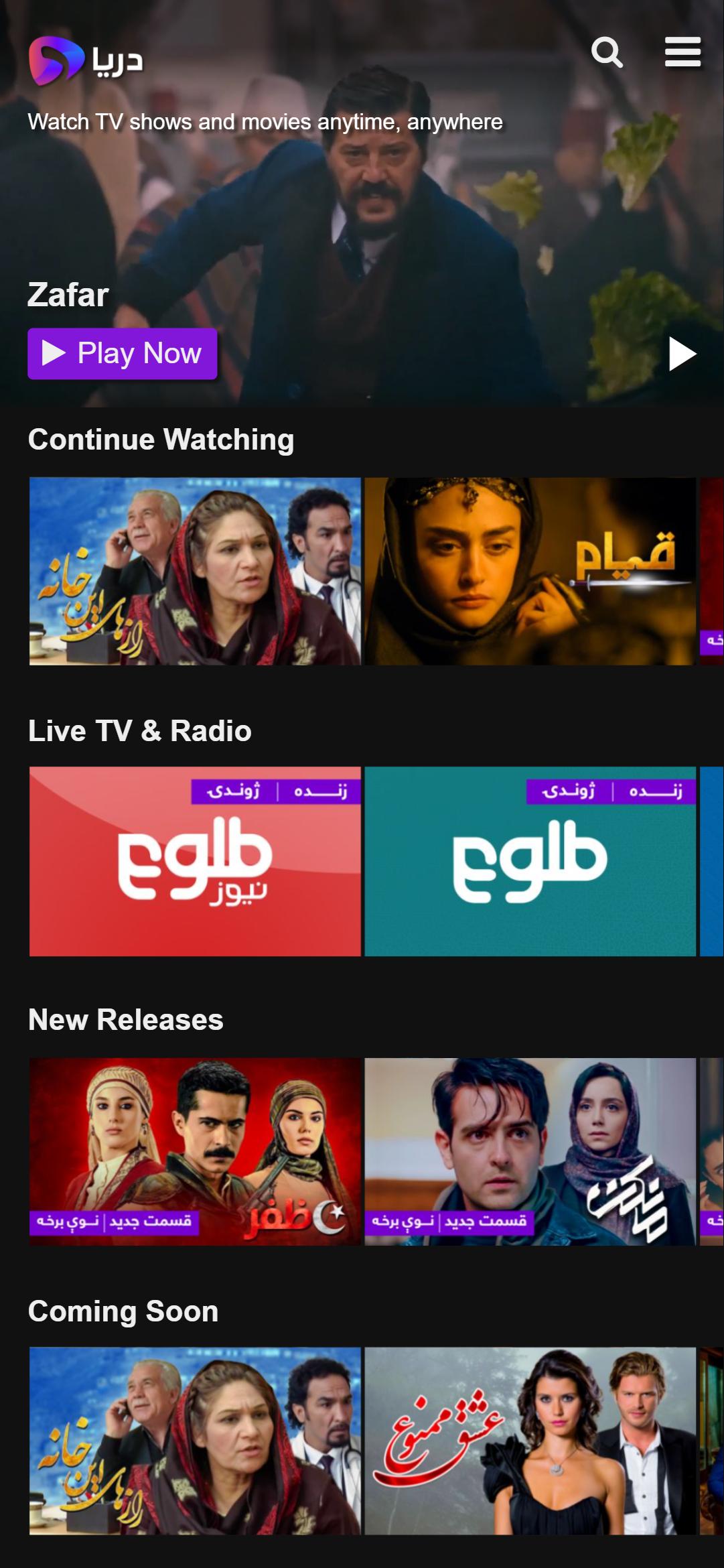 Watch in Dari, Farsi and Pashto the best Afghan, Turkish, Western, Indian and Korean series, movies, TV shows, documentaries, news, sport, kids cartoons and more ...