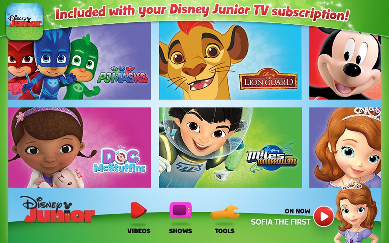 INCLUDED with your Disney Junior television subscription, this app offers the best of Disney Junior, live or on demand!