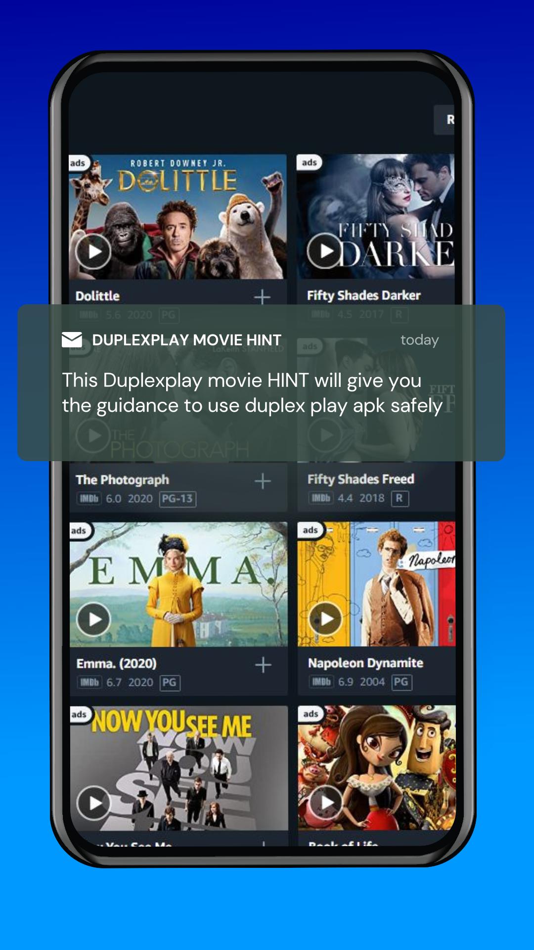 - Guide you for choose a movie in the Duplex Play App free