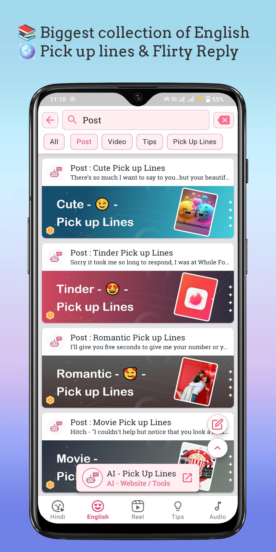 ◾ This app brings you 4000+ creative, flirty, funny, and romantic pick up lines to help you start conversations with charm and confidence. 😘