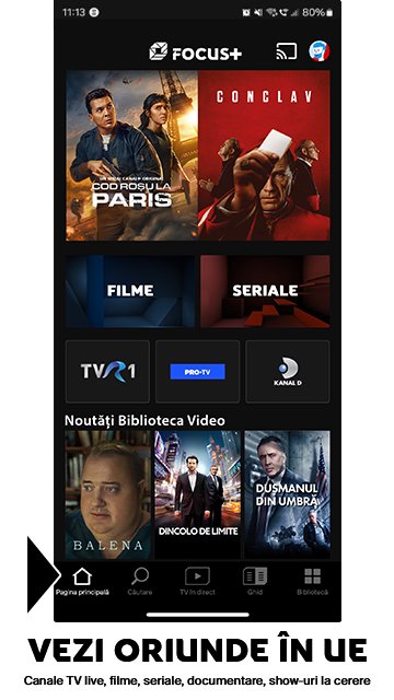 Enjoy Romanian and international Live TV channels, the Restart & Replay function, but also an extensive library of films, series, documentaries and cartoons.