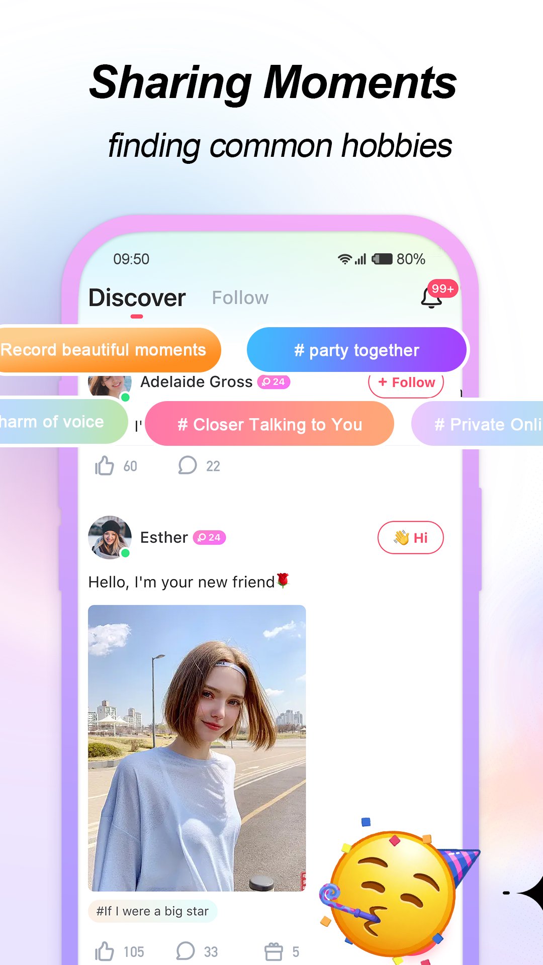 -Many people will share their life moments here, let us thumsup for their wonderful moments. There are also many people who use their own voices to introduce themselves. You can directly listen to her/his voice or browse her/his photos before you know each other.