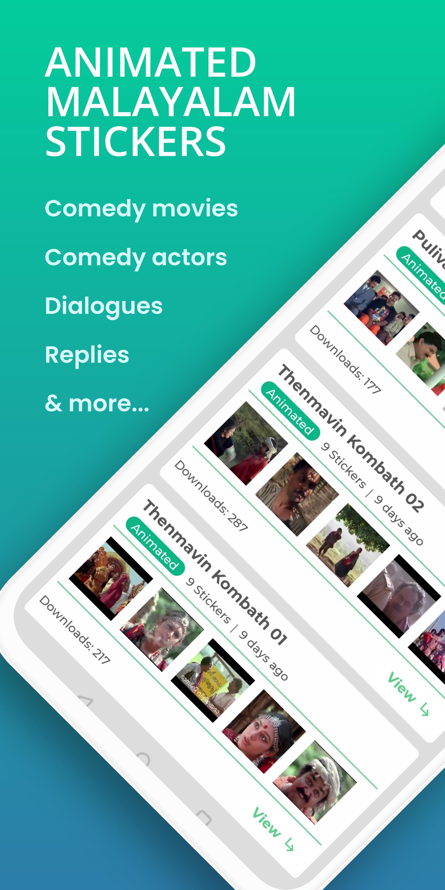 Malayalam animated stickers provides good collection of Malayalam stickers for whatsapp. It contains the best whatsapp stickers which helps you to add much fun in your whatsapp chat and make it more interesting. We added animated stickers across different categories from famous movies, TV shows, web series, cartoons, sports etc. Animated stickers are the best ways to express your feeling and emotions in your replies.