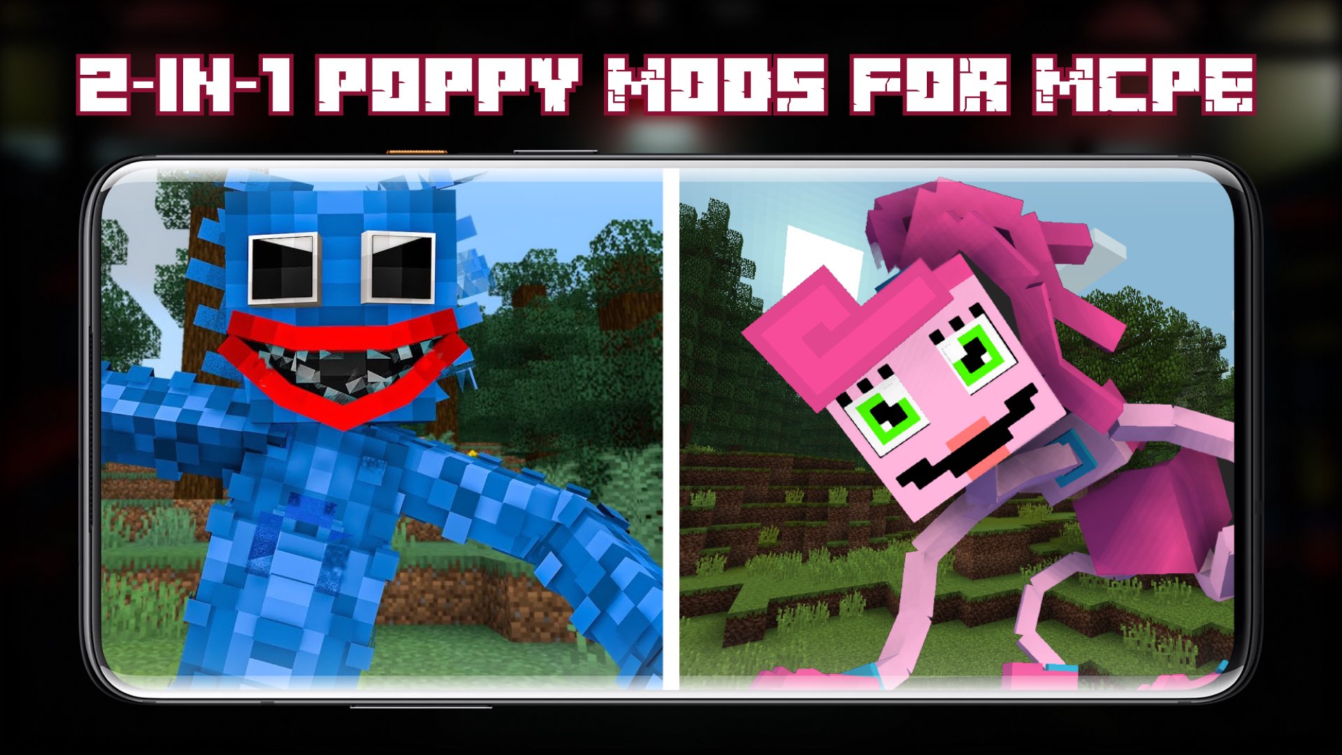 This app will allow you to install the Poppy Playtime Chapter 2 mod and the Mommy Long Legs mod in minecraft. All horror mods of scary toys and Puppy play time maps for MCPE from our selection are based on themes inspired by the popular horror game. This time the player faces a creepy pink stretch toy, which will give new puzzles in the so-called play station, by passing which the player will be able to escape from the factory. Those mods Poppy Playtime Chapter 2 for Minecraft, which are presented in our selection, will definitely allow you to experience a similar experience. Our app also contains the Huggy Wuggy mod for Minecraft. Why is it so necessary to download the scary games addon? First of all, it's a cool solution if you're bored and have nothing to do in the game. Secondly, scary dolls and toys will definitely give you adrenaline and show your bravery. And thirdly, mods and horror add-ons from our selection fit all versions of the game!