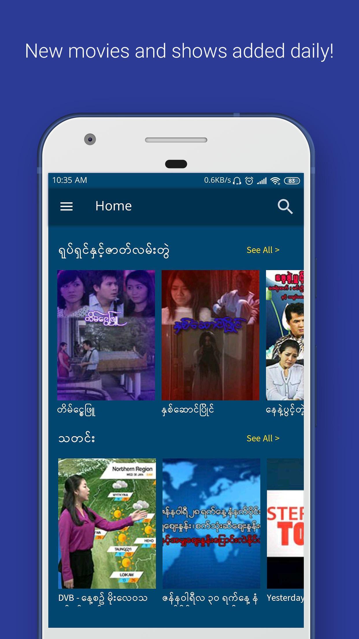 Myanmar Cast is the mobile application for Myanmar Net’s internet TV subscription service. It welcomes you with a library full of media entertainment programs for you to enjoy. We partner with famous media content providers to bring you a variety of news, programs, shows, and much more. Myanmar Cast offers the best Myanmar Movies, news updates, MTV songs, lifestyle programs, and educational shows. Myanmar Cast is brought to you by Frontiir.