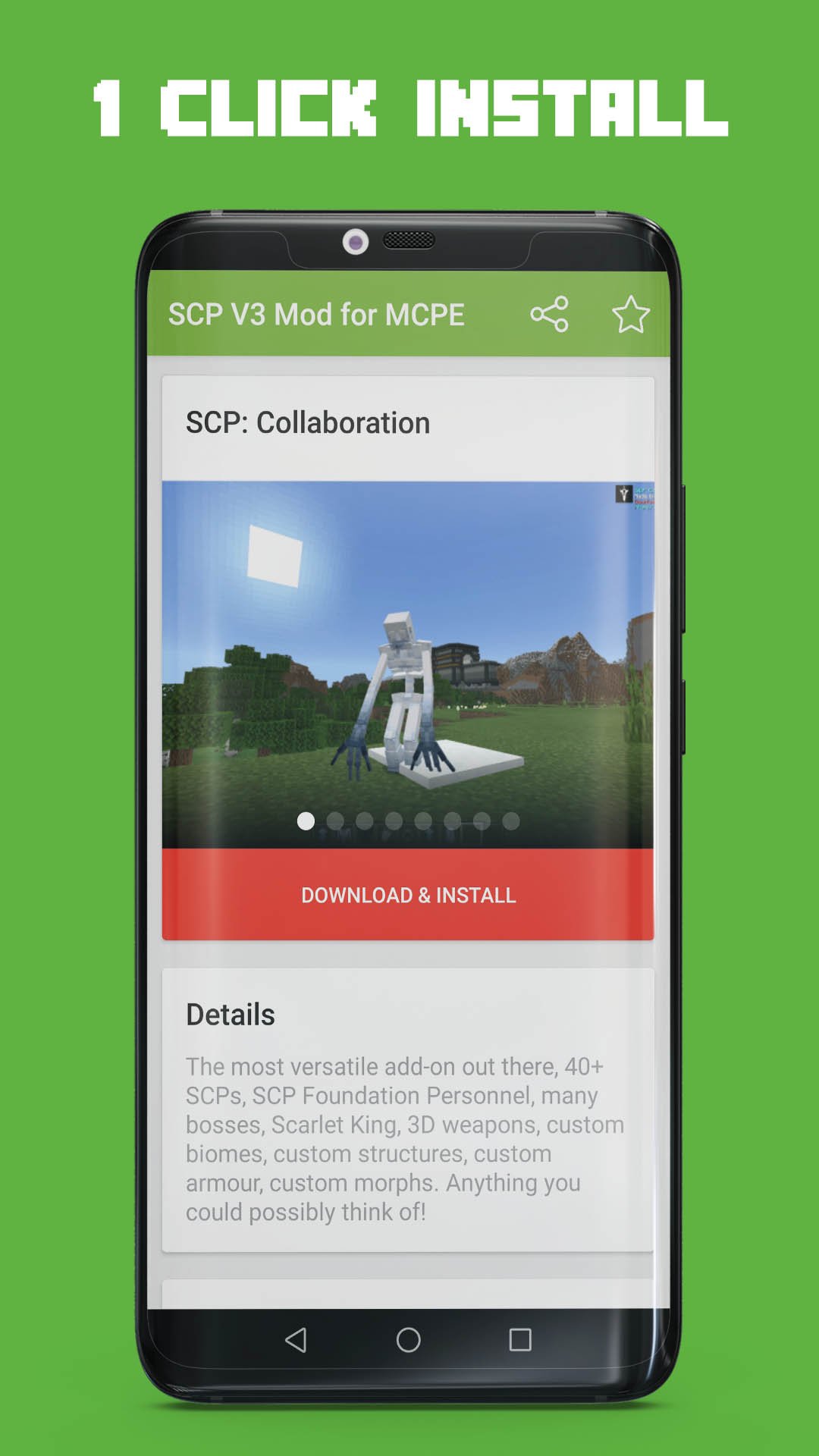 SCP V3 Mod for Minecraft PE is an application that allowed you to easily download & install SCP: Collaboration Add-on to Minecraft Pocket Edition game in your Android devices. Thanks to our 1-Click installer that make it super easy to install Minecraft Mods, Addons, Maps, Skins, and Texture Packs.