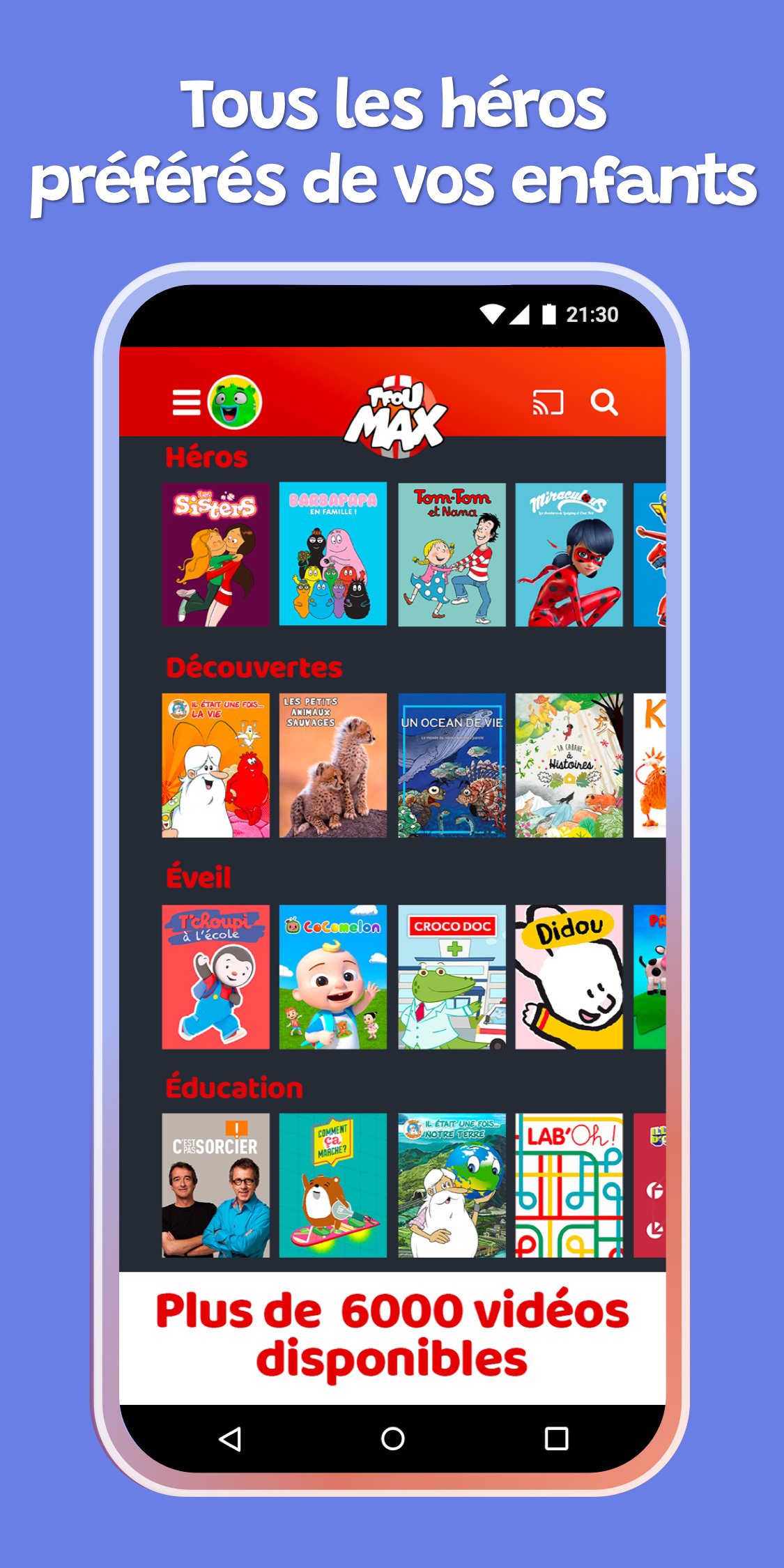 • More than 6,000 videos (cartoons, films, edutainment videos, documentaries and shows) with a catalog carefully enriched each week by our team.
