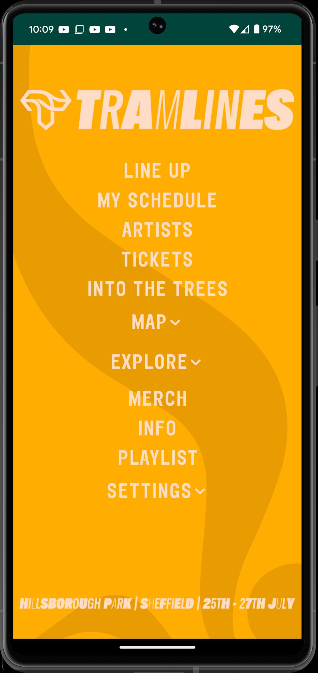 Welcome to the Tramlines Planner! Over the weekend of 25th - 27th July, there'll be an amazing line-up with more 70 artists across four stages, plus comedy, pop-up cinema, an expanded family area and spectacular food and drink. This app won't be used for proving your Covid Status, please read full information here: https://tramlines.org.uk/info/covid-policy/