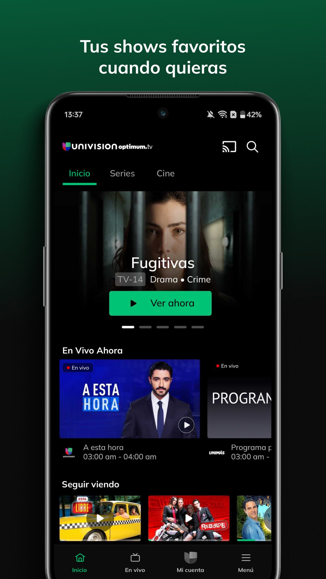 You will have at your fingertips all the live programming from Univision and UniMás live and on demand. You can access the Univision app with most TV services, including Comcast Xfinity, DirecTV, Dish, Spectrum, AT&T, Verizon FIOS, and others.