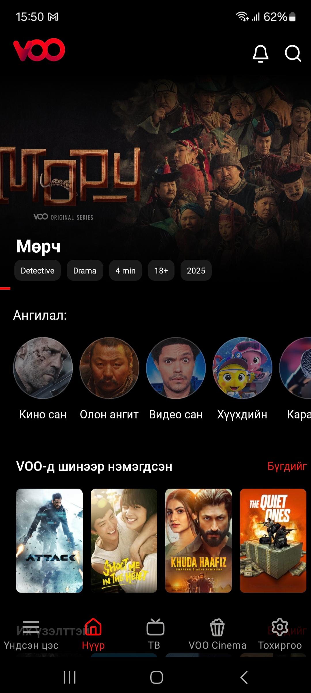 - VOO Cinema: Watch the latest blockbuster movies and premium content with VOO Cinema. We continuously update our catalog with the newest releases from both Mongolian and international cinemas.