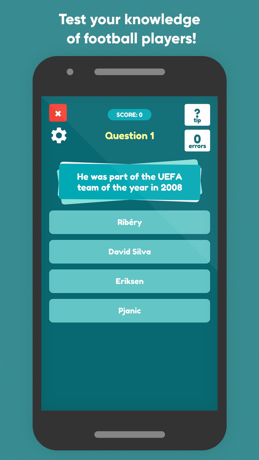 Each match has 50 questions, in case you don't know which player, you have the option to ask for a tip to try to show your knowledge of football