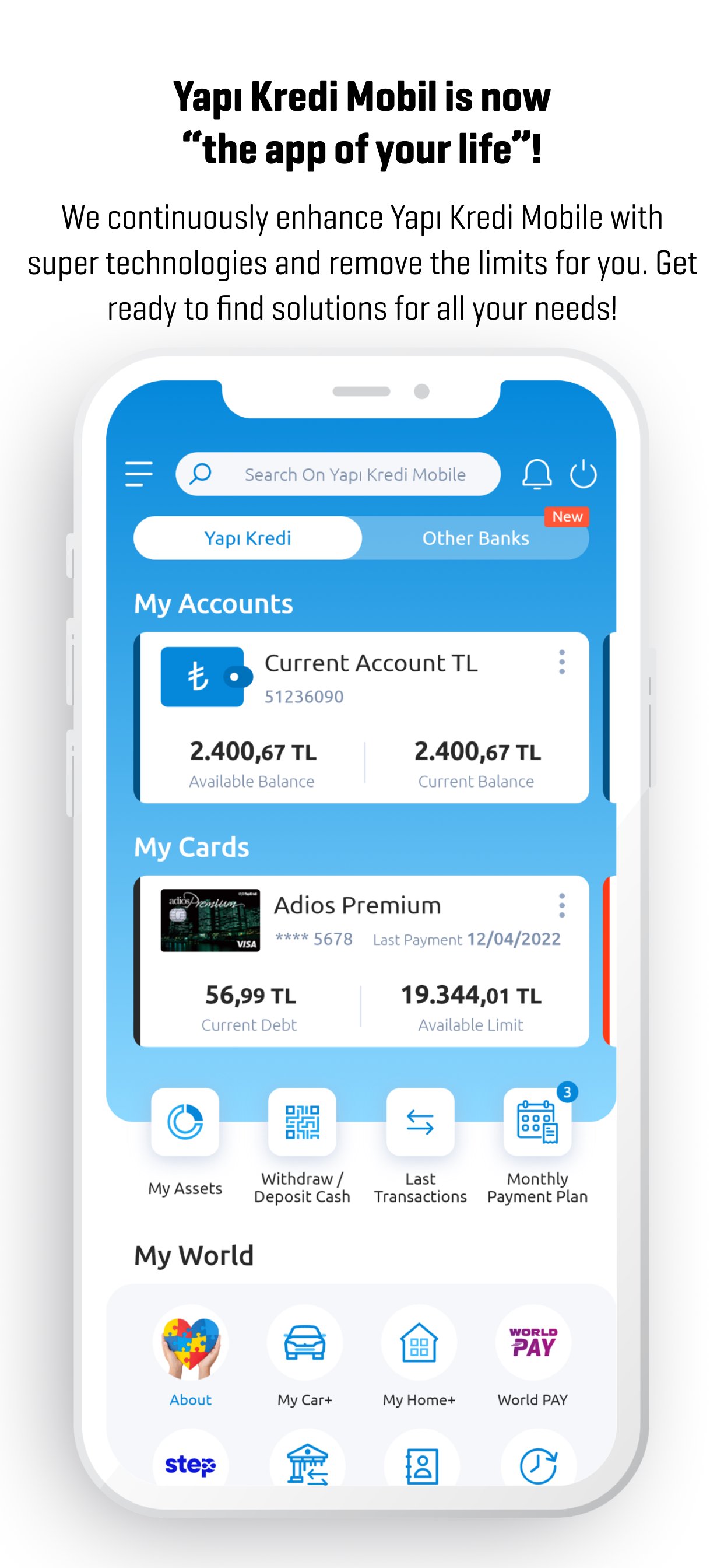 Yapı Kredi Mobile evolves with super technologies and continues to break boundaries. Get ready to find all the solutions you need in one place!