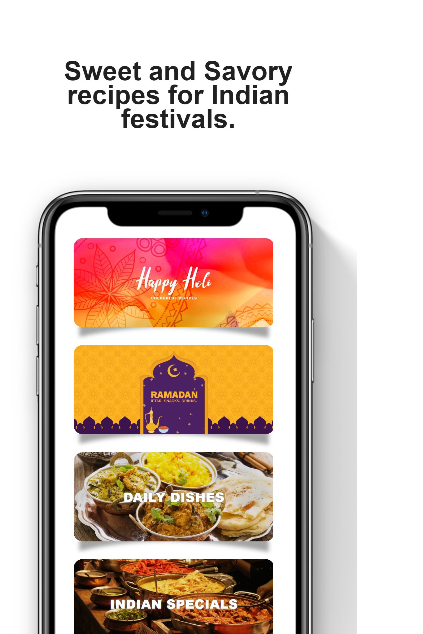 Our healthy Indian recipe app gives you lots of free cooking recipes for kulfi, pickle, etc. Now that you've our Indian food recipes app, you no longer need to carry around bulky recipe books.