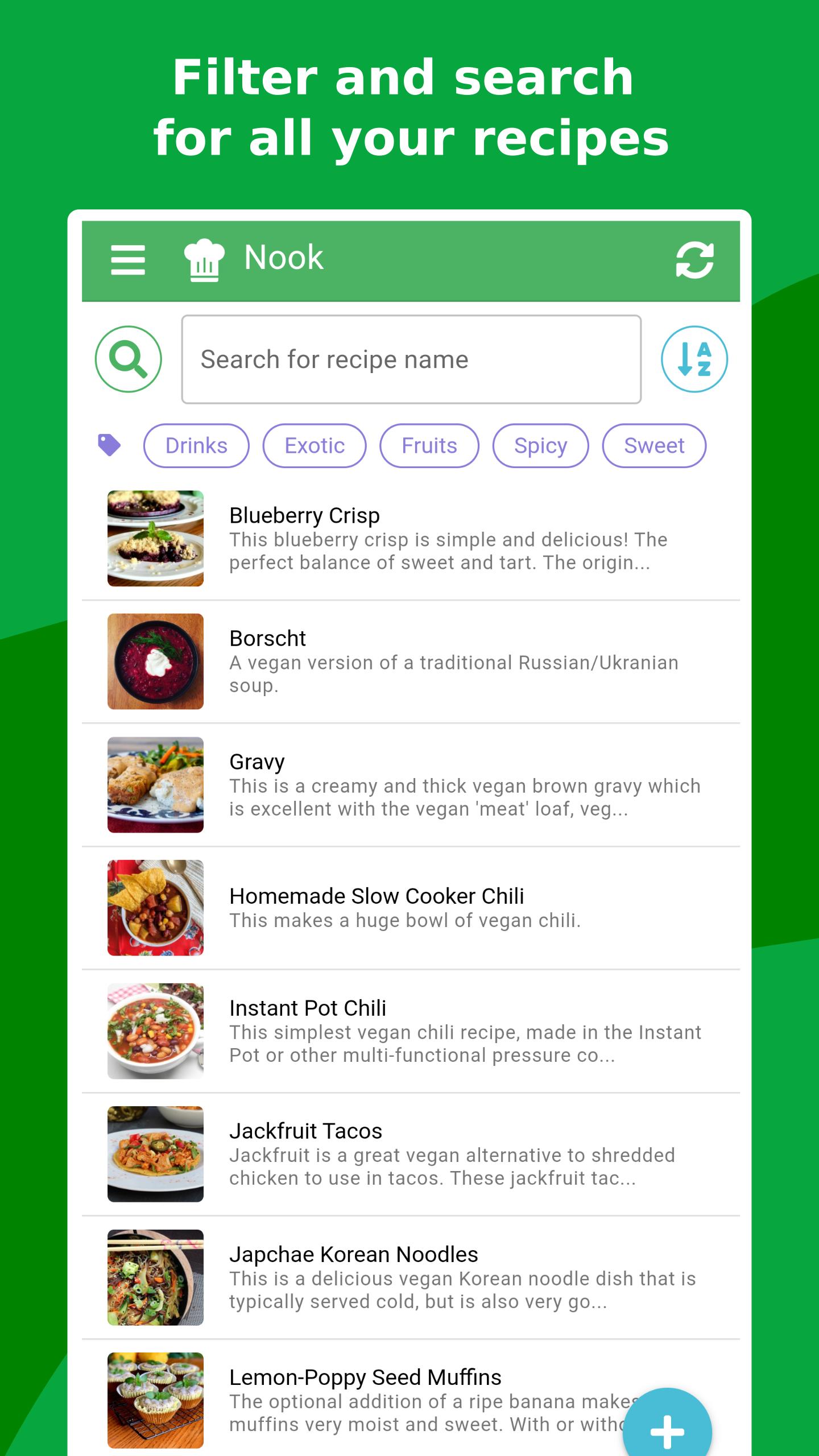 - All your recipes are cached on your device for quick access, even without internet access