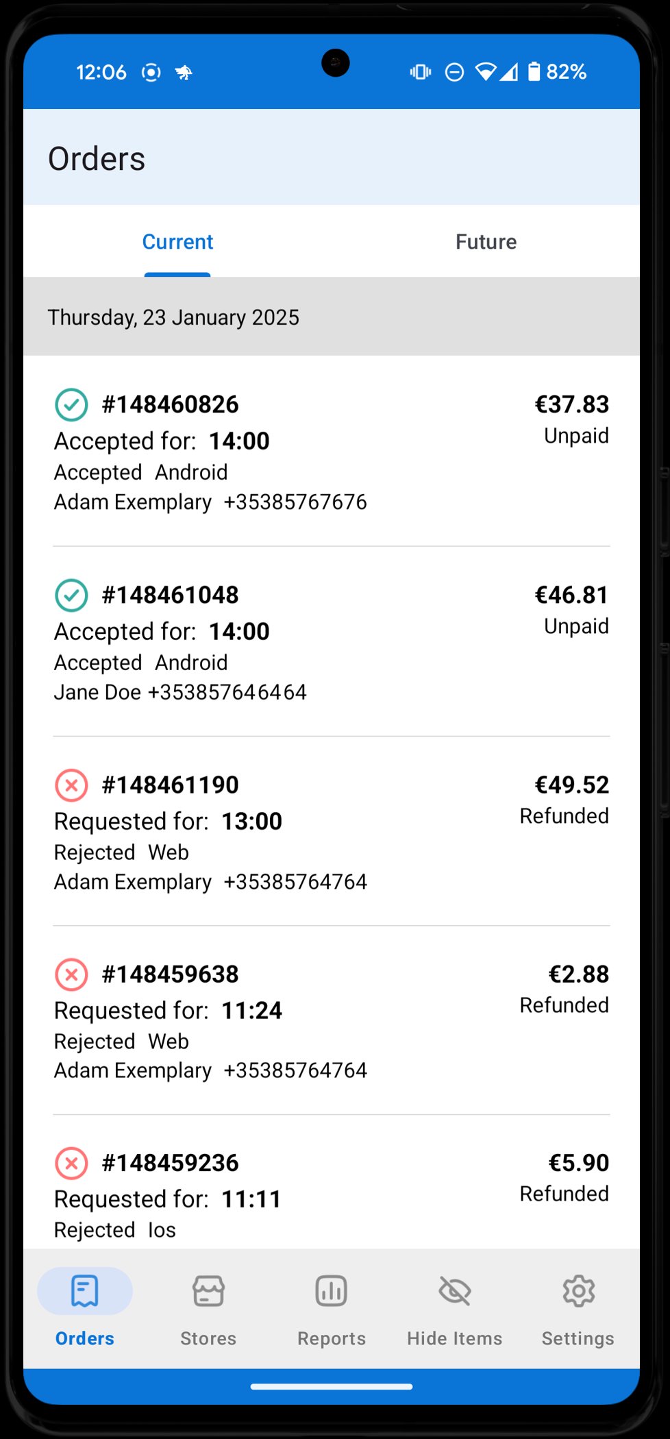 Use the Flipdish Terminal app to receive your online and kiosk orders, accept, reject and refund orders and manage your store.