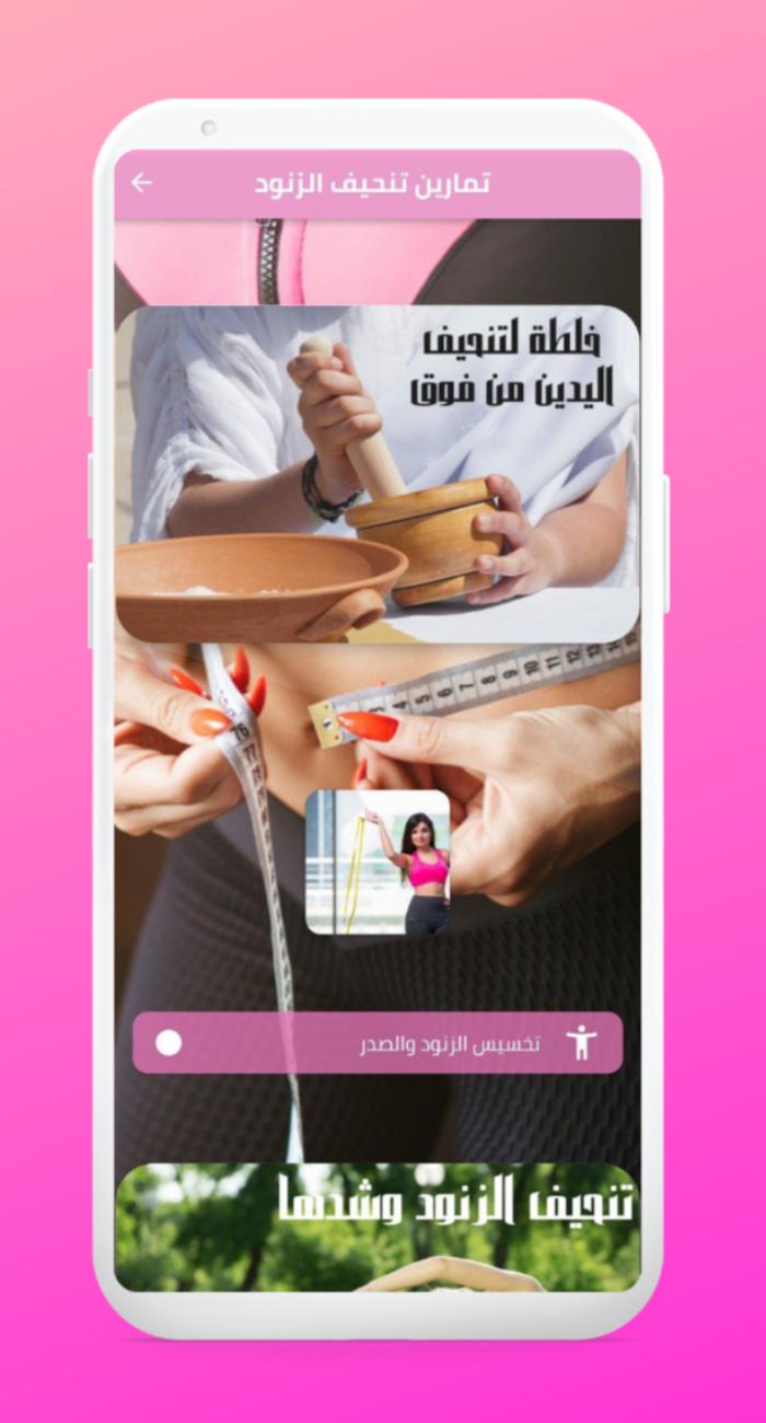 نقدم لكم تطبيق تمارين تنحيف الزنود الذي يوفر لكم افضل الطرق و الوصفات و التمارين لتنحيف الزنود و التخلص من ترهلات الزنود و الجسم ليكون جسمك اكثر جمالا و ايضا في تطبيق تمارين تنحيف الزنود ستتعرف على تمارين للزنود و تمارين لتنحيف اليدين و تنحيف الزنود والاكتاف و طريقة تنحيف الزنود و تنحيف الزنود والظهر و خلطة لتنحيف اليدين من فوق و تنحيف الزنود وشدها و تنحيف الزنود والارداف و تنحيف الزنود والبطن و تخسيس الزنود والصدر و غير ذلك الكثير في تطبيق واحد و هوه تمارين تنحيف الزنود .
