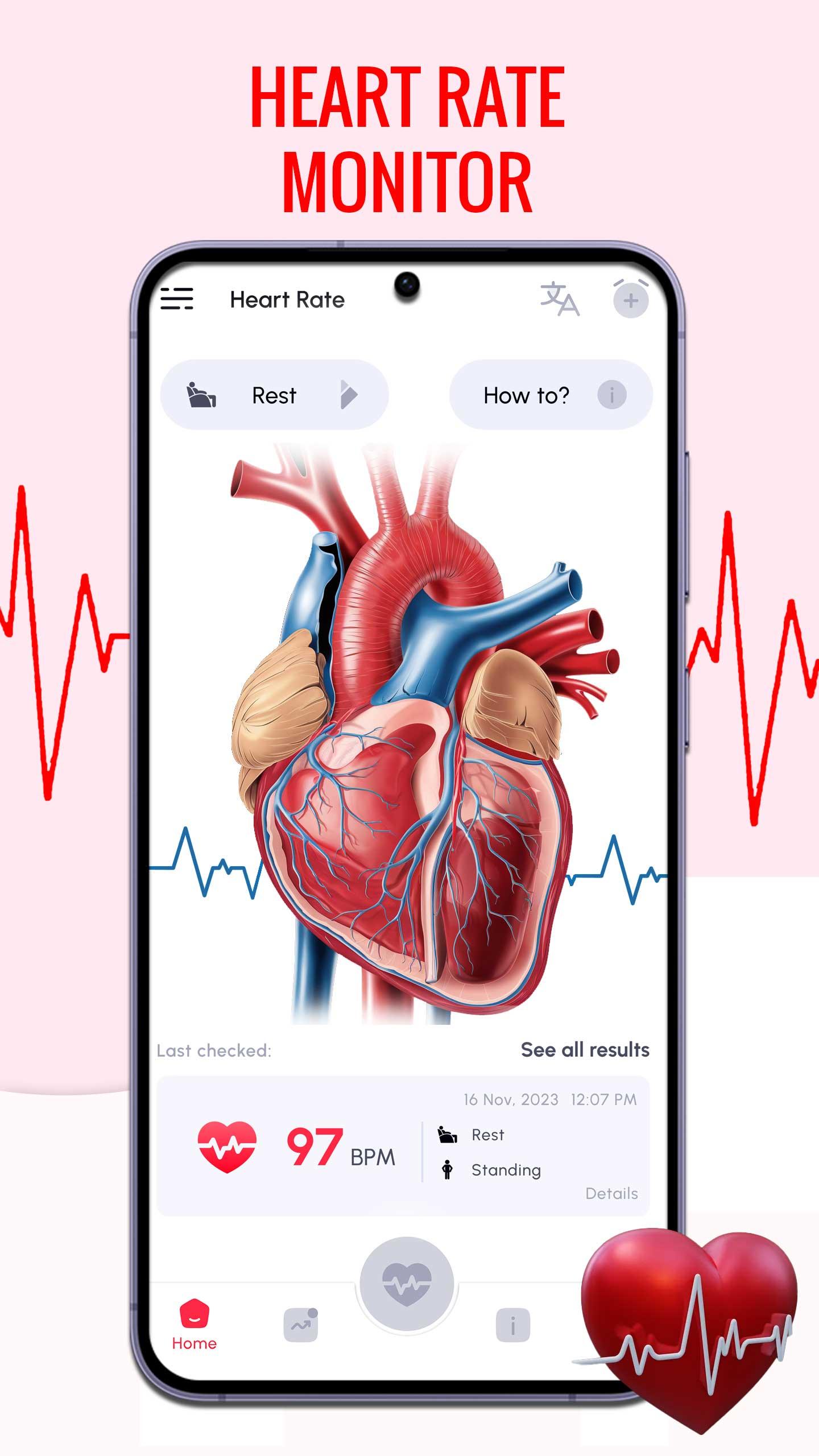 Stay ahead of heart health concerns with our easy-to-use heart rate tracker. Whether you need a stress monitor, BP checker, or a heart analyzer, our app delivers accurate insights to help you stay fit.