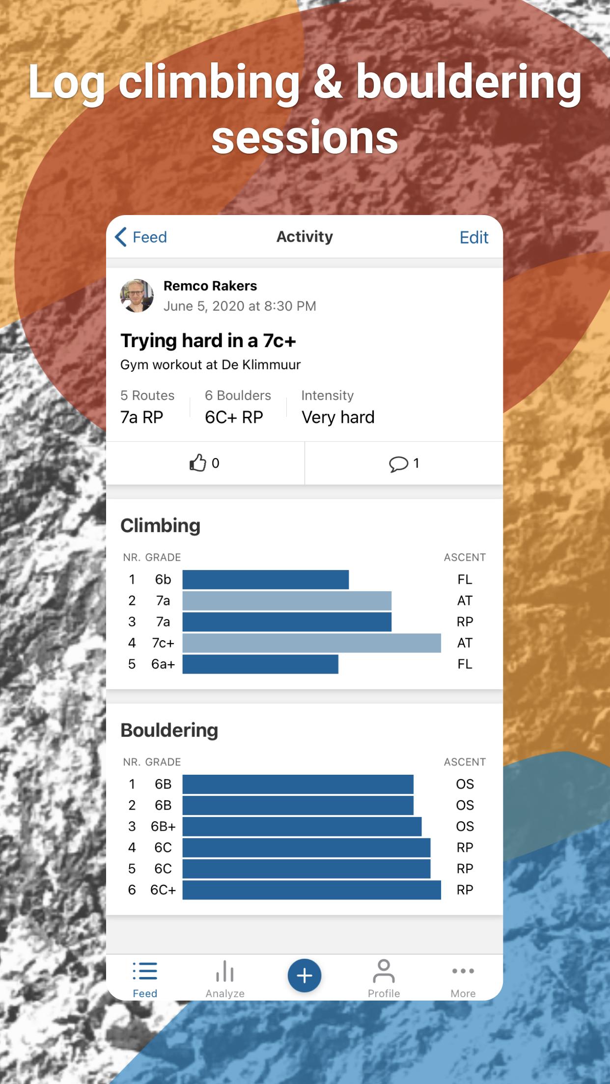 View your own activities and those of your friends. Get inspired by other people’s achievements and get motivated to become a better climber.