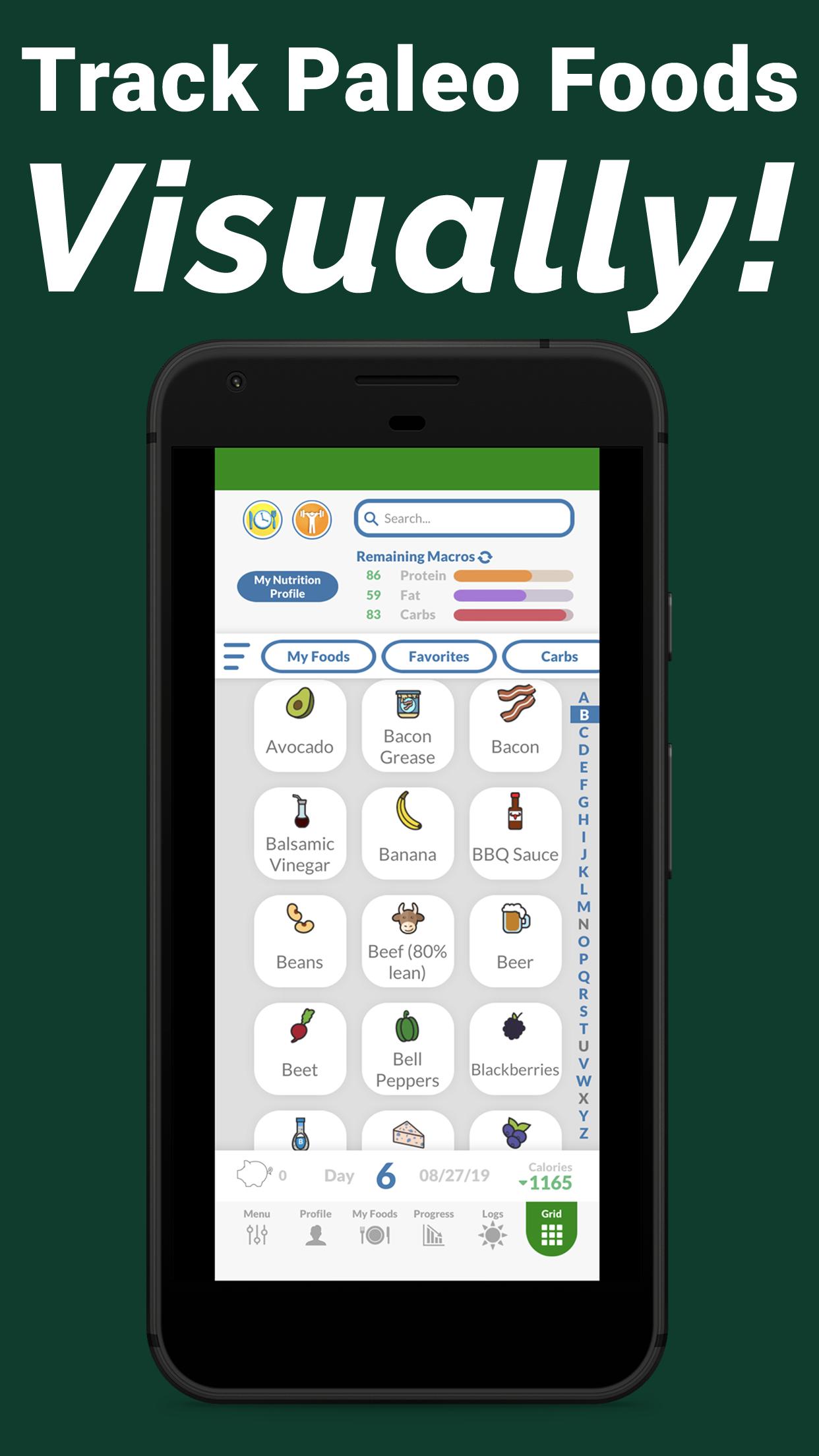 • Easy-to-use food icons for logging your daily Paleo foods.