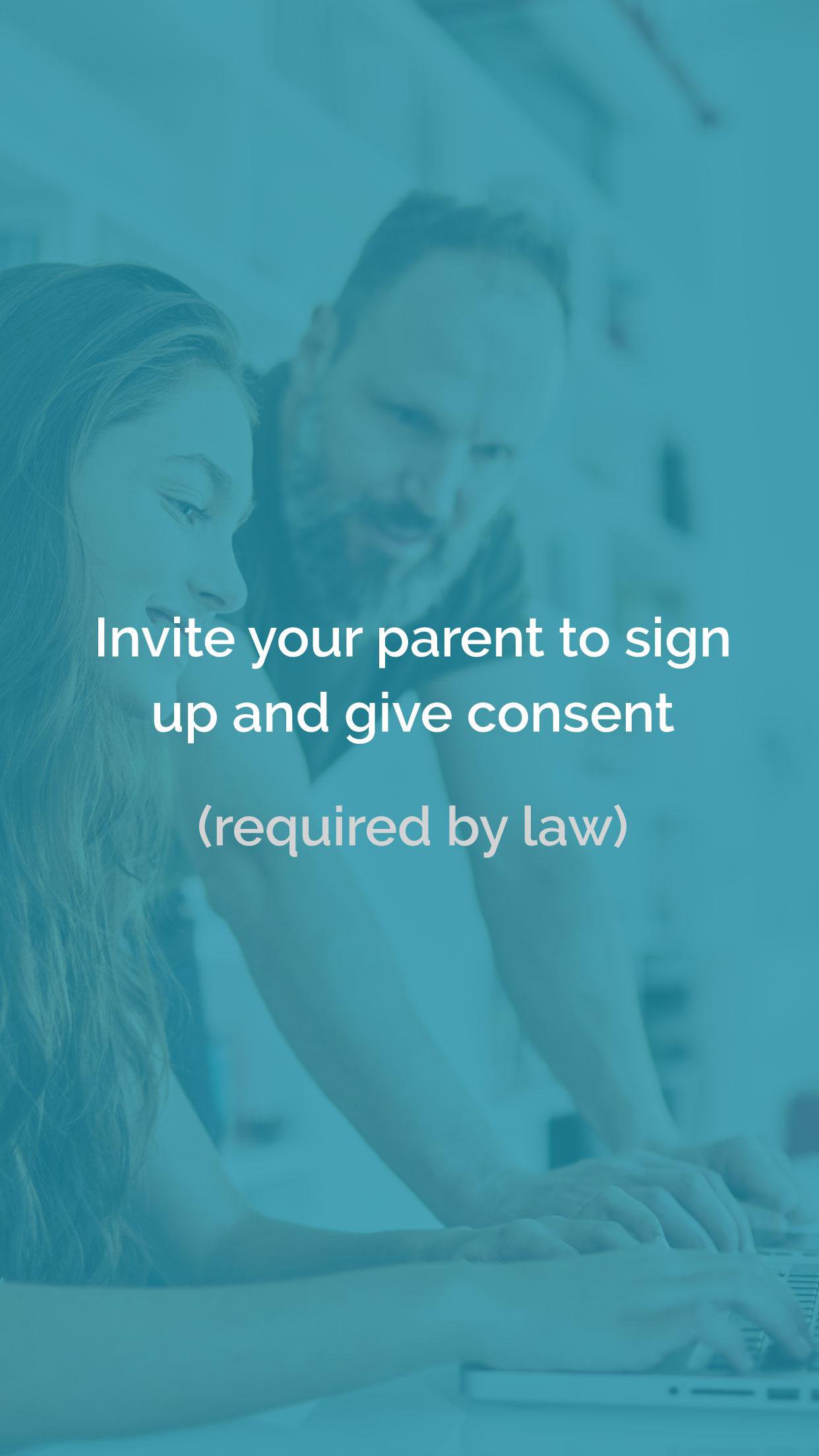 Invite your parent(s) to sign up. They fill out a consent form for you (required by law)