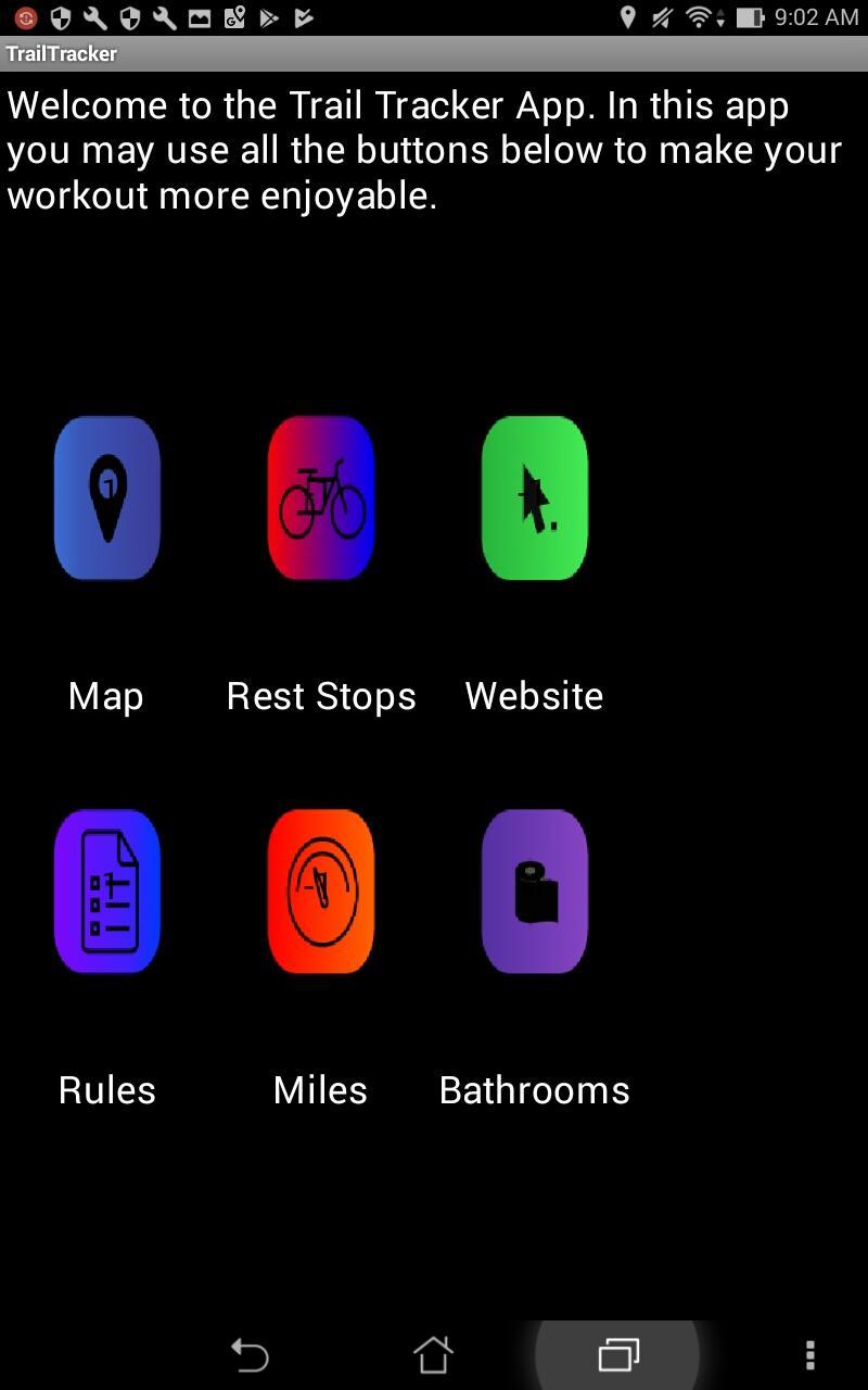 Trail Tracker is an app that helps you have a better workout. With the help of six helpful buttons, you can go from the map to finding a bathroom. The layout of the app makes it easier to find different things from the map to the miles/calories button. This app helps out everyone who loves the Greenbelt and who like to have a good time with family and friends.