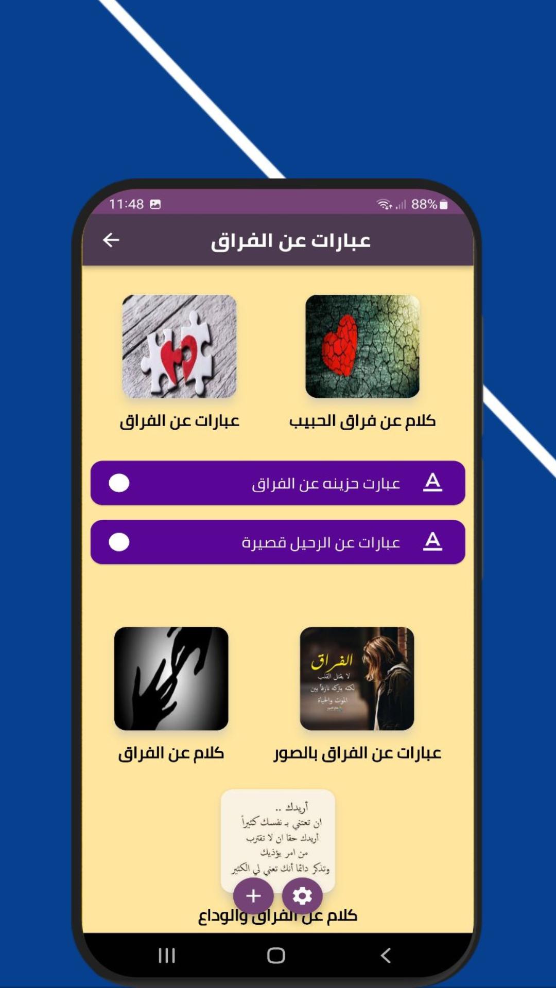 - التطبيق يحتوى على عبارات عن الفراق
