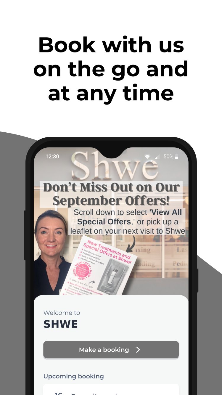 The SHWE app makes booking your appointments even easier. You're just a few taps away from feeling good and looking great!