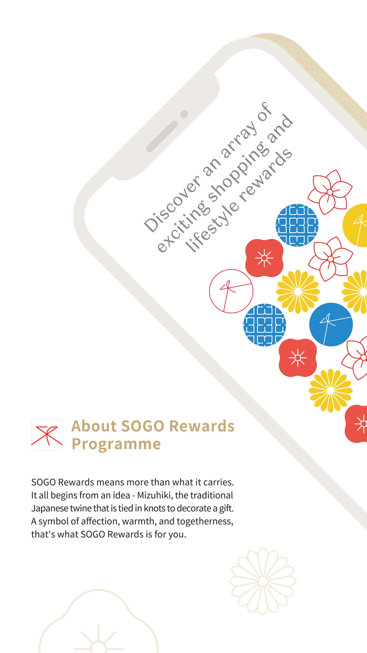 SOGO Rewards means more than what it carries. It all begins from an idea - Mizuhiki, the traditional Japanese twine that is tied in knots to decorate a gift. A symbol of affection, warmth, and togetherness, that's what SOGO Rewards is for you.