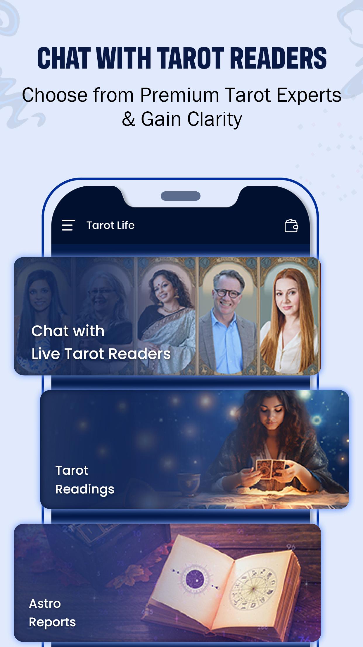 Welcome to Tarot Life, the most trusted Online Tarot Reading and astrology app with over 4M+ downloads! Whether you're facing problems in love, career, marriage, or future planning, connect instantly with trusted Tarot Readers and Psychics via chat or call.