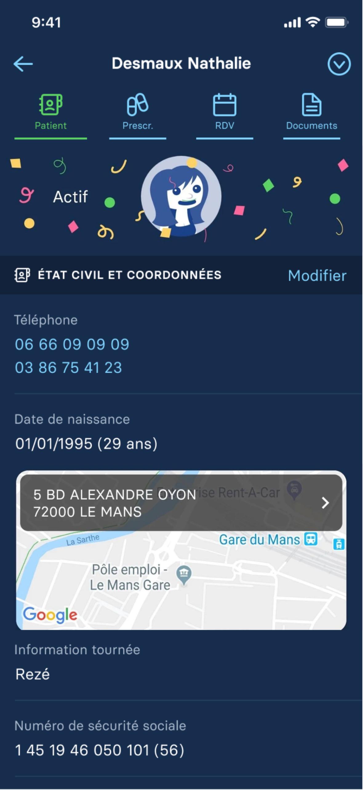 OPTIMIZATION OF YOUR ROUTE - all your daily tasks are carried out from your smartphone: reading Vitale cards, scanning mutual funds, SCOR scanning of prescriptions, entering prescriptions, etc.