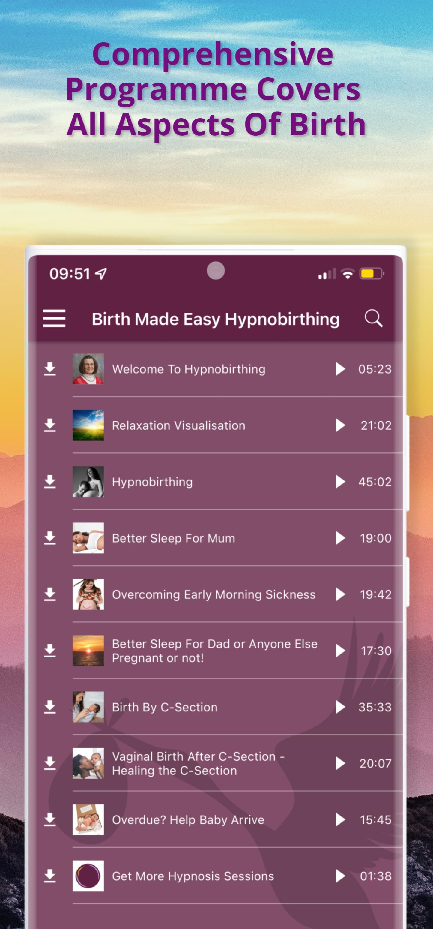 A powerful and comprehensive app for childbirth which covers all eventualities from natural birth to c-section and how to help your baby arrive if overdue. You can try our introductory Relaxation Visualisation for free right now and if you enjoy this you can access all the other recordings along with the digital version of the book “Birth Made Easy” via a subscription.