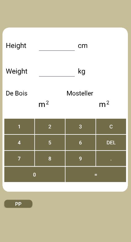 When entering the values and pressing the "=" button, the body surface area is displayed.