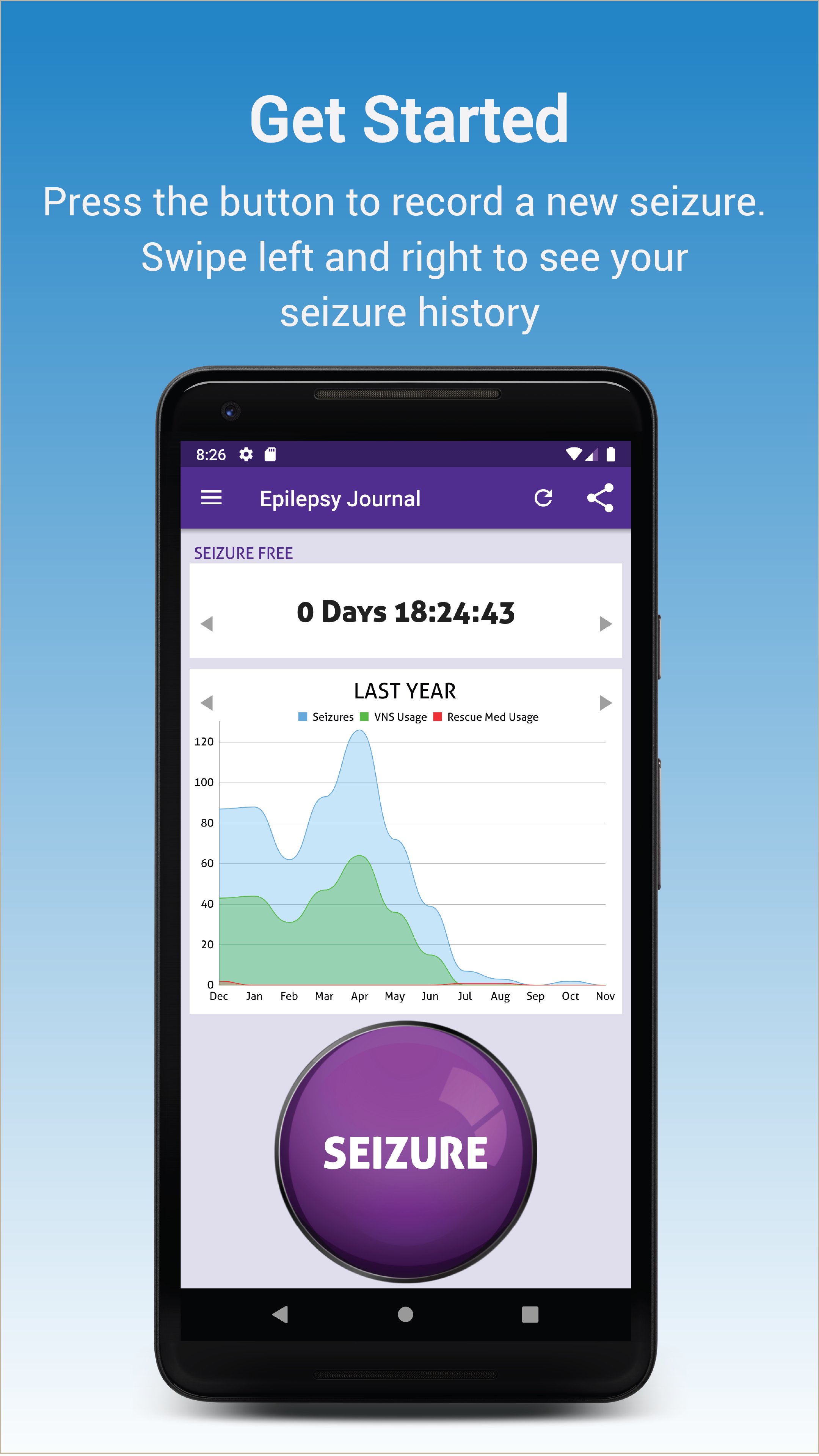 We created this app as a free and simple way to monitor your epilepsy; track trends and patterns, objectively determine effectiveness of seizure treatment overtime, and improve success of doctors appointments.