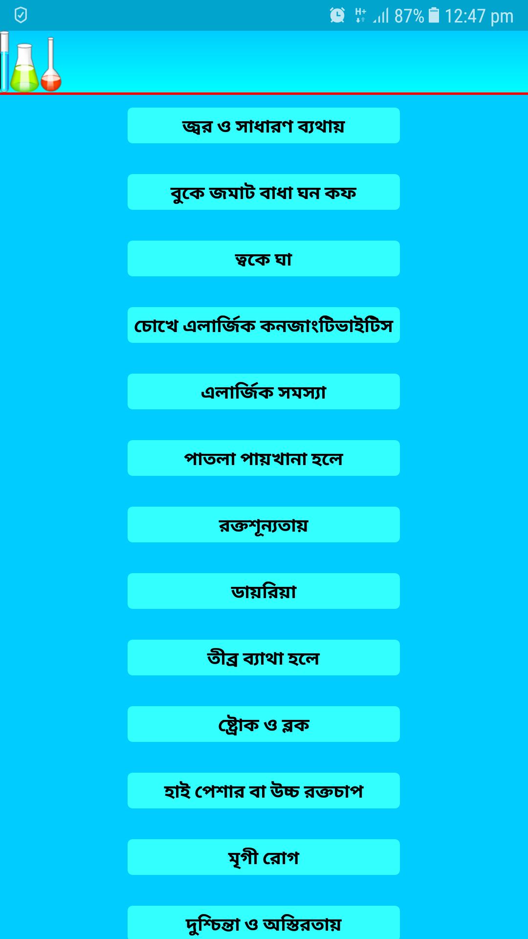বিভিন্ন প্রকার রোগের প্রাথমিক চিকৎসা এবং প্রত্যেটি ঔষধ সম্পর্কে বিস্তারিত জানার এপ.
