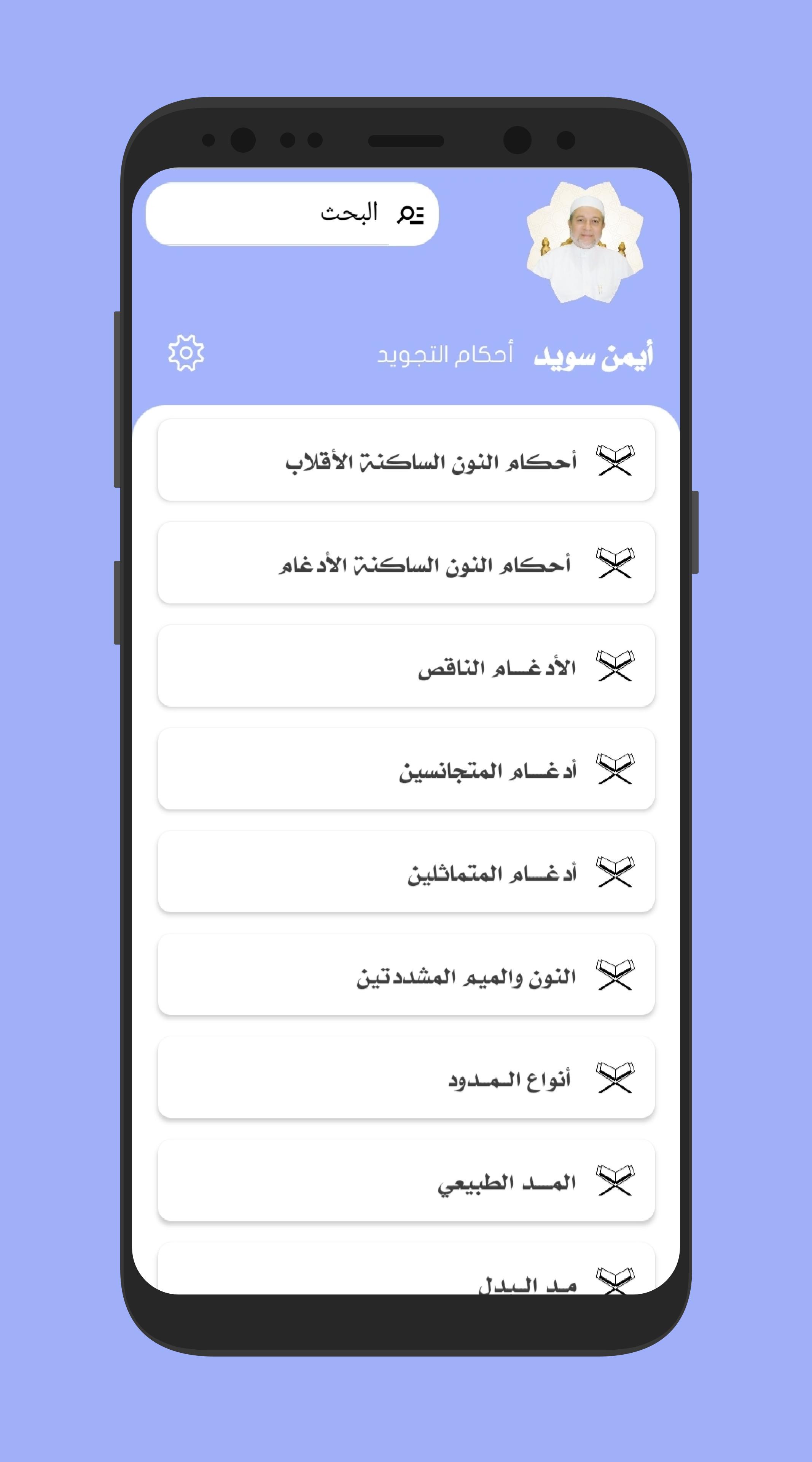 The provisions of intonation without the net, voice and with high quality in a distinctive application with multiple characteristics that ensure easy use of the lessons of teaching the provisions of the complete intonation of Sheikh Ayman Suwaid without the Internet.