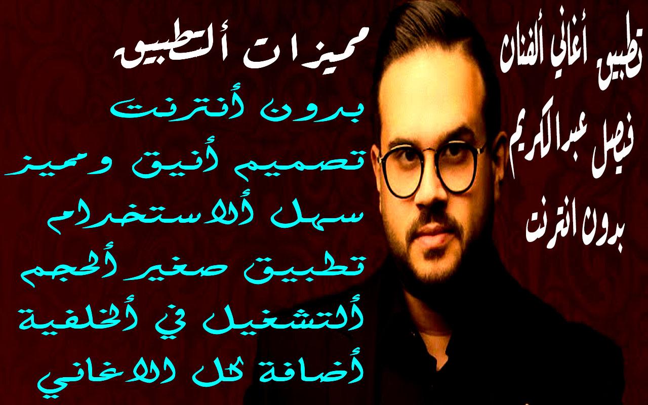 يسعدنا أن نقدم لكم أغاني فيصل عبدالكريم الذي يظم الاغاني المميزه الذي تودون سماعها كل ما تريدون من اغاني تجدونها في تطبيق واحد بدون نت حيث ان التطبيق يمتلك التصمميم الانيق والسهل وبما ان التطبيق سهل الاستخدام ويعمل بدون انترنت ونقوم باضافه اي اغنيه فور نزولها