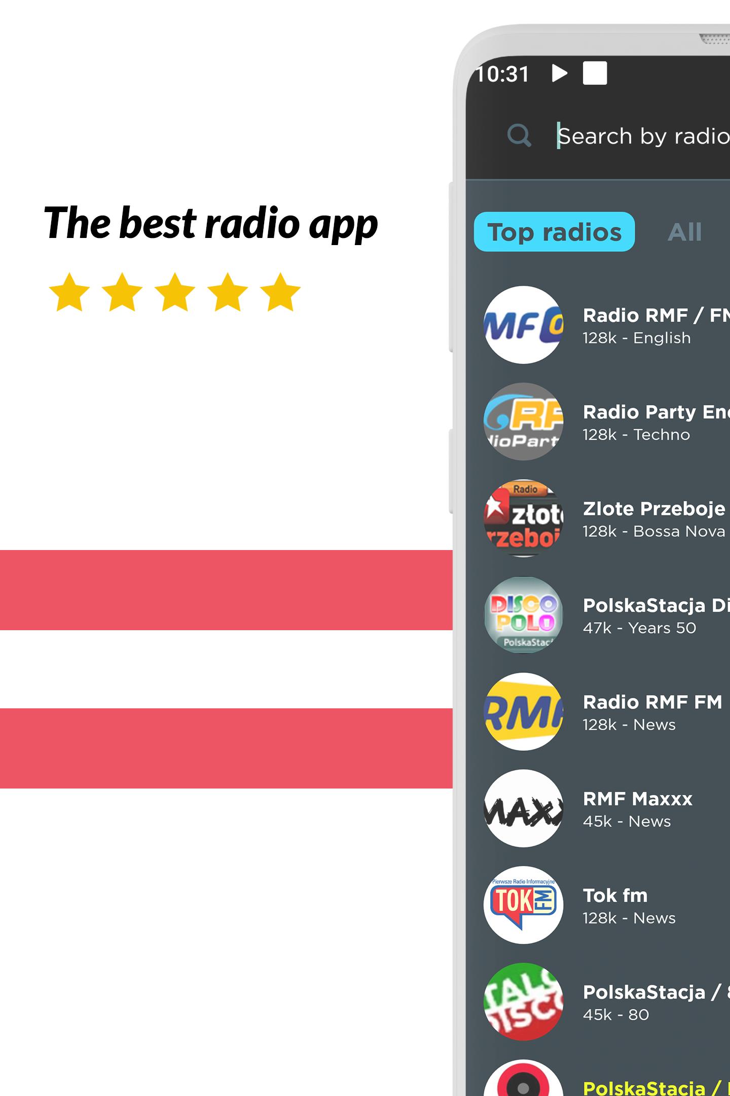 Listen to all your favorite radio stations like RMF, Zlote Przeboje, Party Energy 2000, PolskaStacja, ZET, Eska Warszawa, PR1 Jedynka, Tok, Maryja, PR3 Trójka, Muzyczne, Piekary, Silesia, Anty, R maxx and many more! And no matter what city or country you are in, you can listen to your favorite local radio station from anywhere in the world!