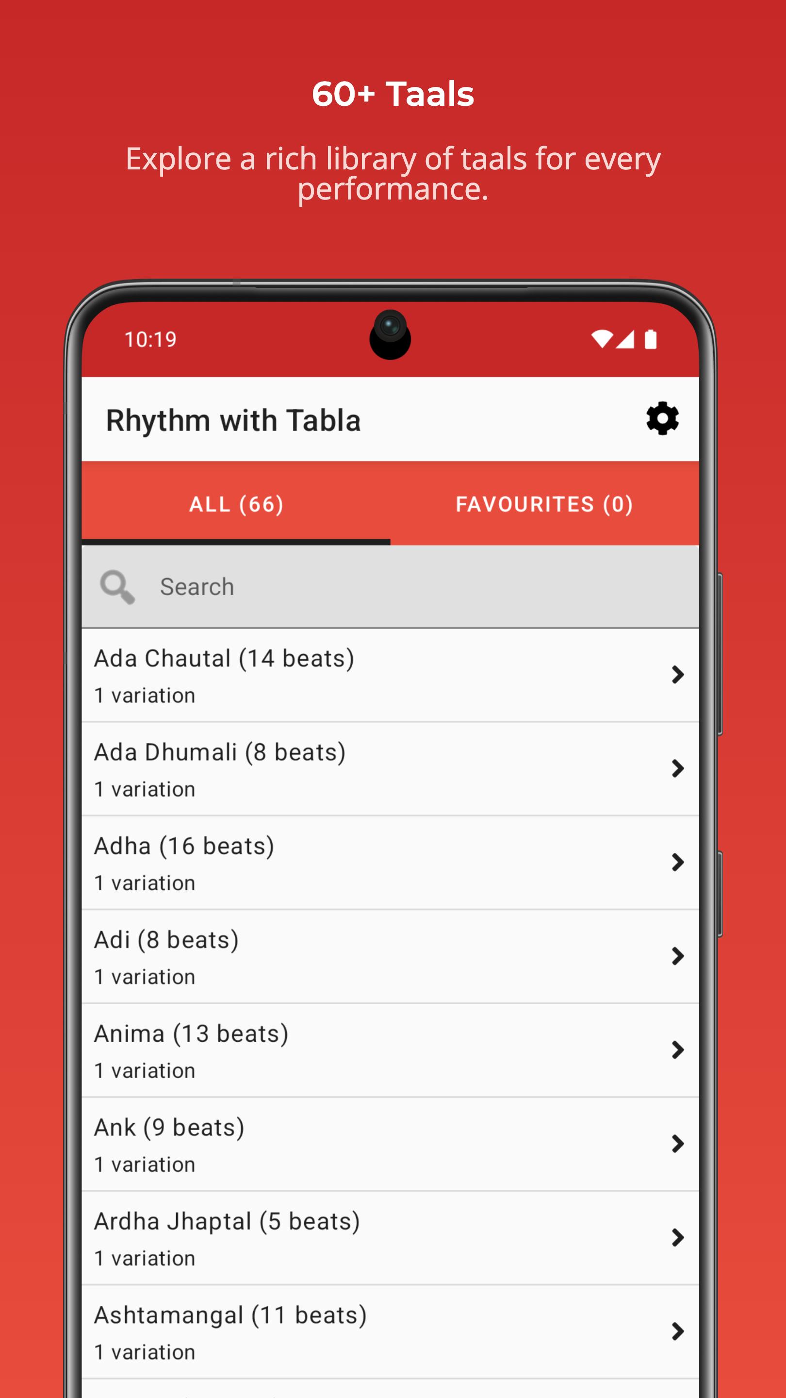 * List of 10 taals (In Premium version you get 60+ taals)