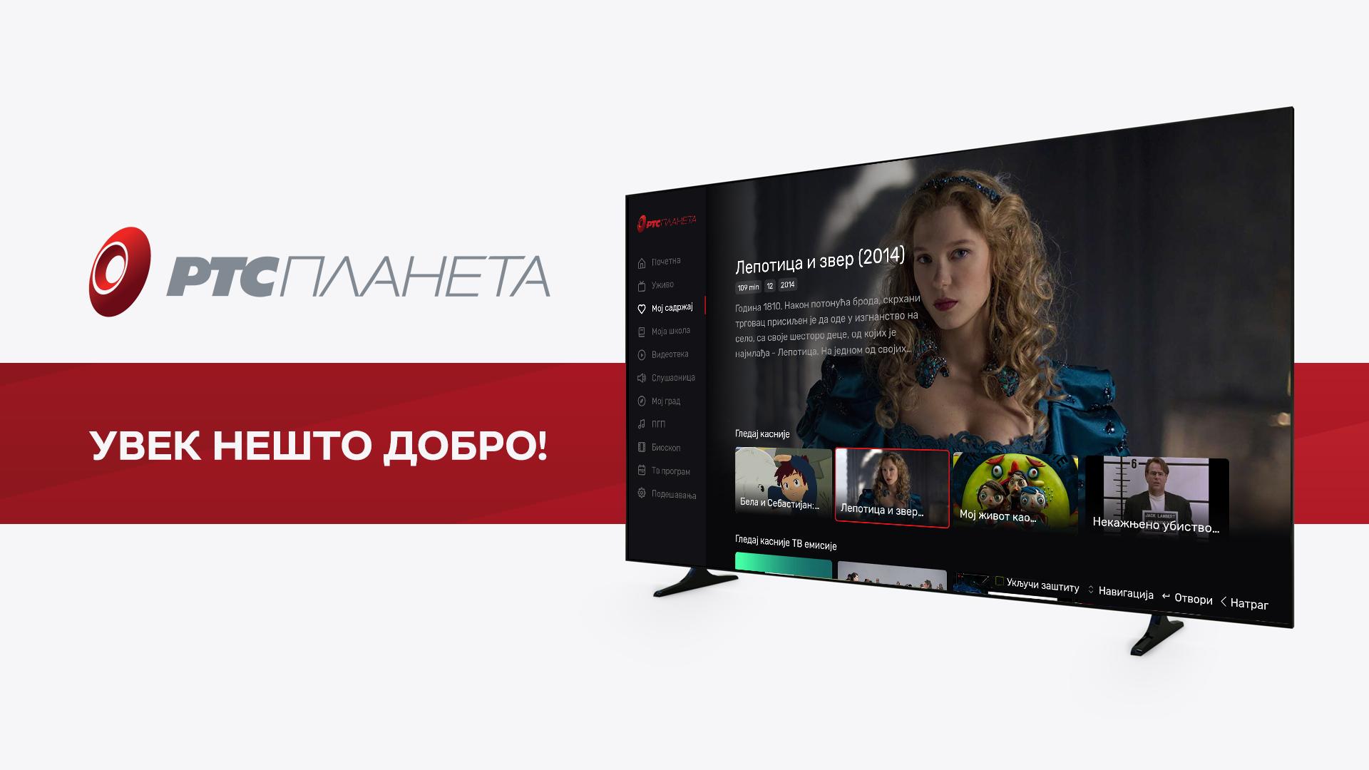 RTS Planeta is a internet TV and radio platform that allows you to watch TV and radio programs of the Media Public Service of Radio-Television of Serbia, Catch Up service of 72 hours (delayed viewing of program content), Video on demand and Audio on demand (TV monitoring and radio shows within the Videoteka and Slušaonica), as well as individual stories within the whole Moj grad from the correspondent network of RTS. Also, on the multimedia platform RTS Planeta, PGP RTS music releases are also available. For the monitoring of the RTS Planeta service, the user must download the RTS Planeta application, ensure Internet access and the correct operation of the receiving device.